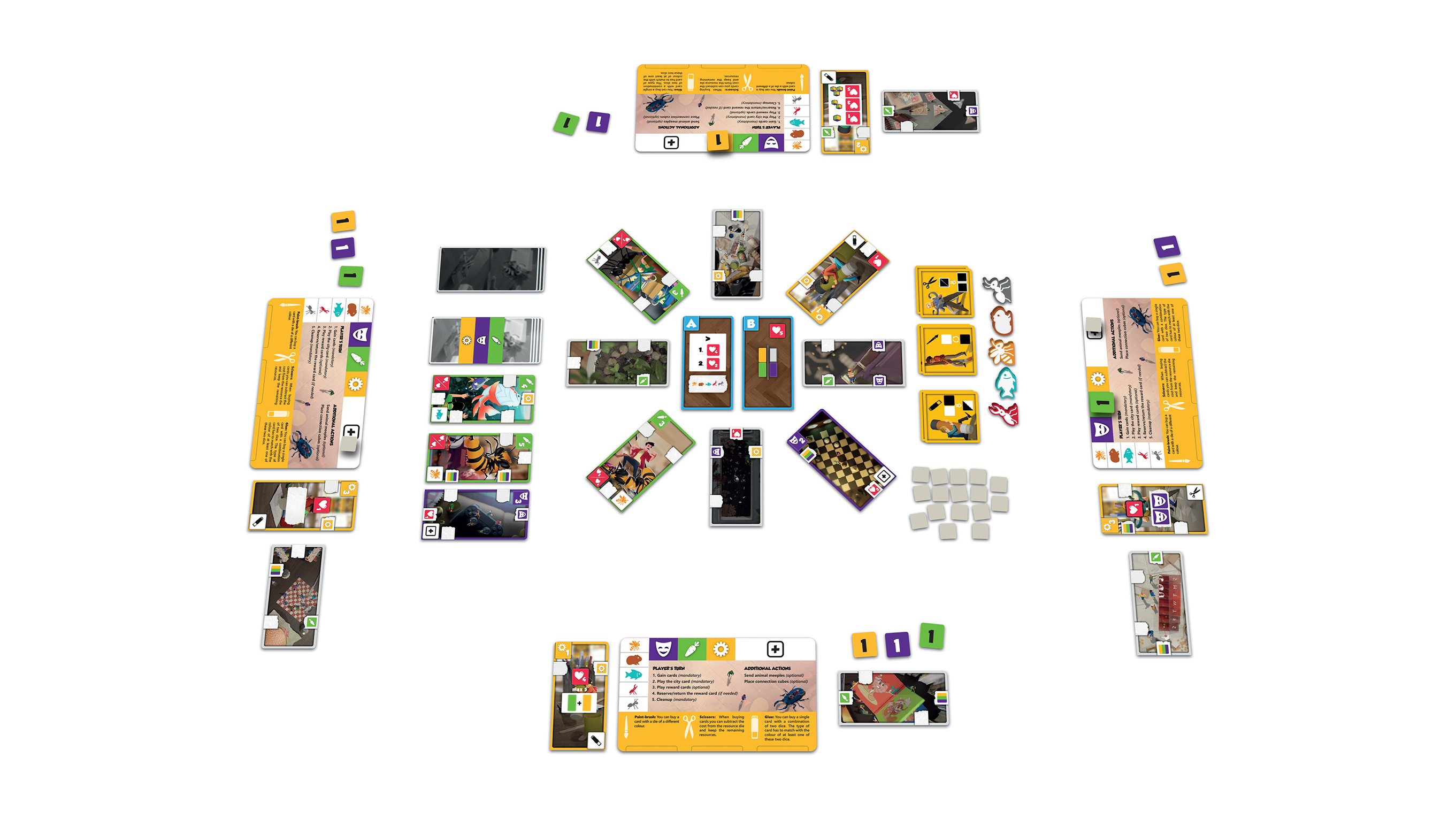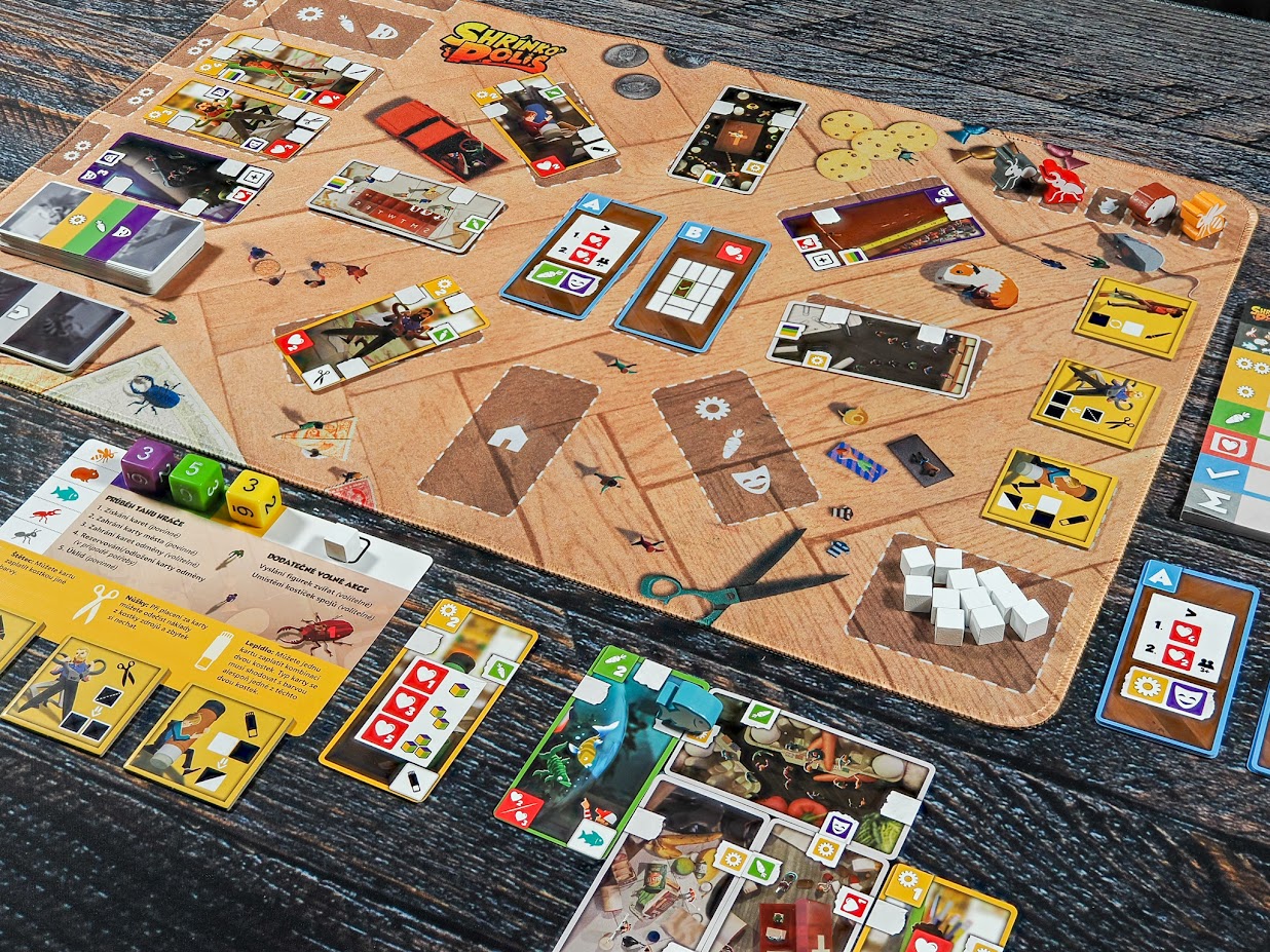 After 5 rounds, tally up all points earned from reward cards and public and personal goals, and whoever has the most points wins and becomes the Mayor of Shrinkopolis!