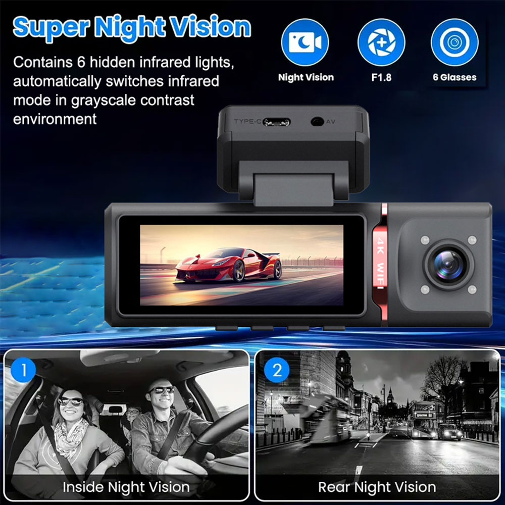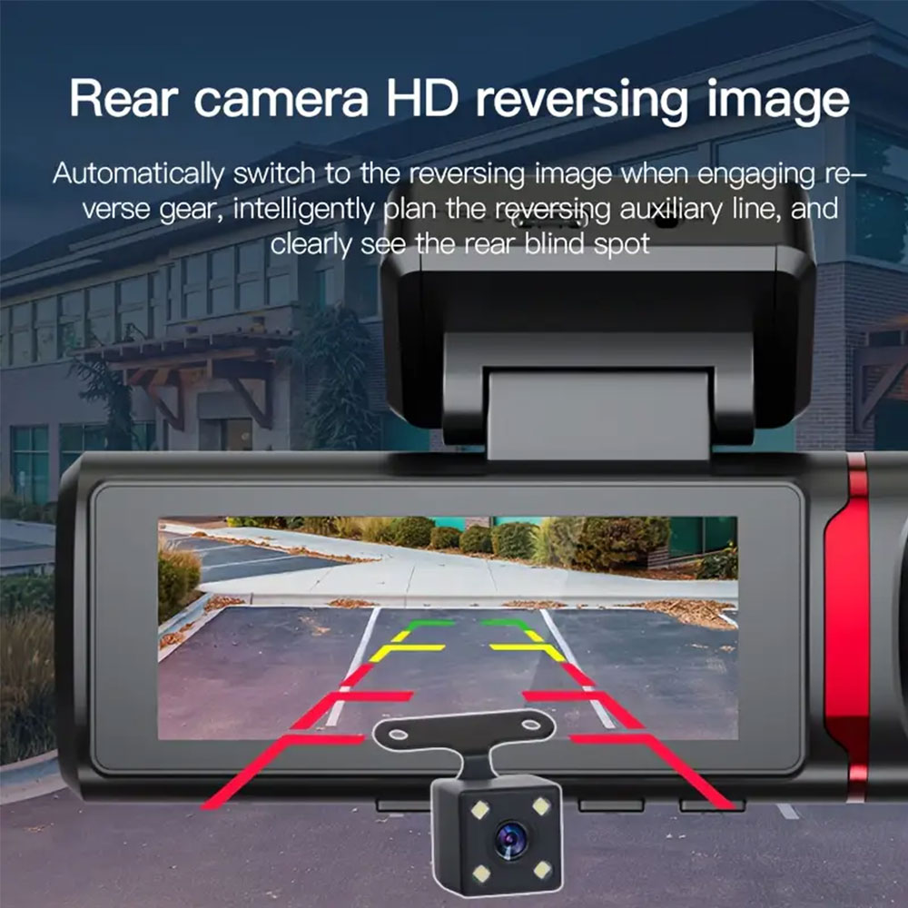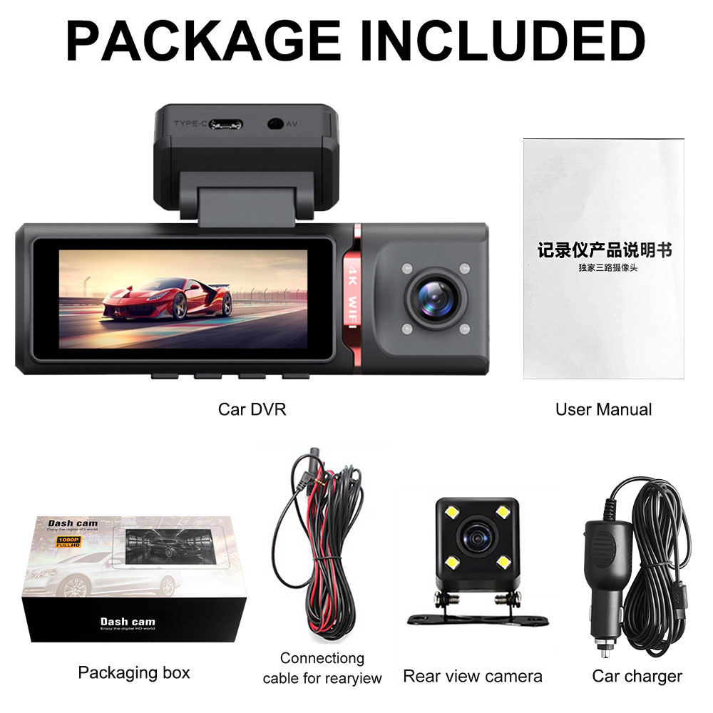 1.Diese Dashcam ist mit einer 150° Frontkamera, einer 120° Innenraumkamera und einer 120° Rückfahrkamera ausgestattet. 1080P Frontkamera kann klare und scharfe Videos liefern und kleine Details erfassen, wenn sie in eine Kollision verwickelt ist. Die Rückfahrkamera informiert Sie immer über den Straßenzustand dahinter und schützt Sie vor dem Einsteigen in ein anderes Auto beim Einparken. Für Rideshare-Fahrer bietet die Indoor-Car-Kamera zusätzlichen Schutz beim Begleiten von Kunden.