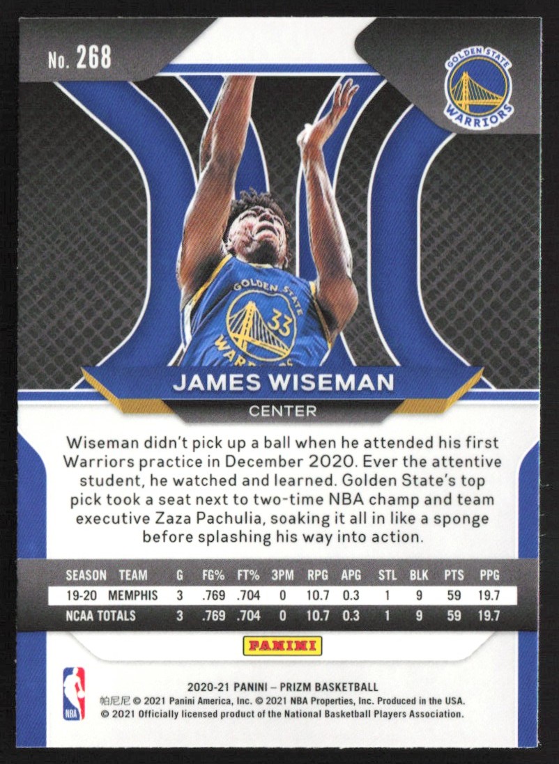 | 2020-21 Panini Prizm James Wiseman Rookie #268 GS1 |