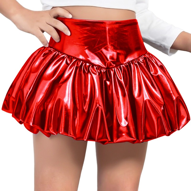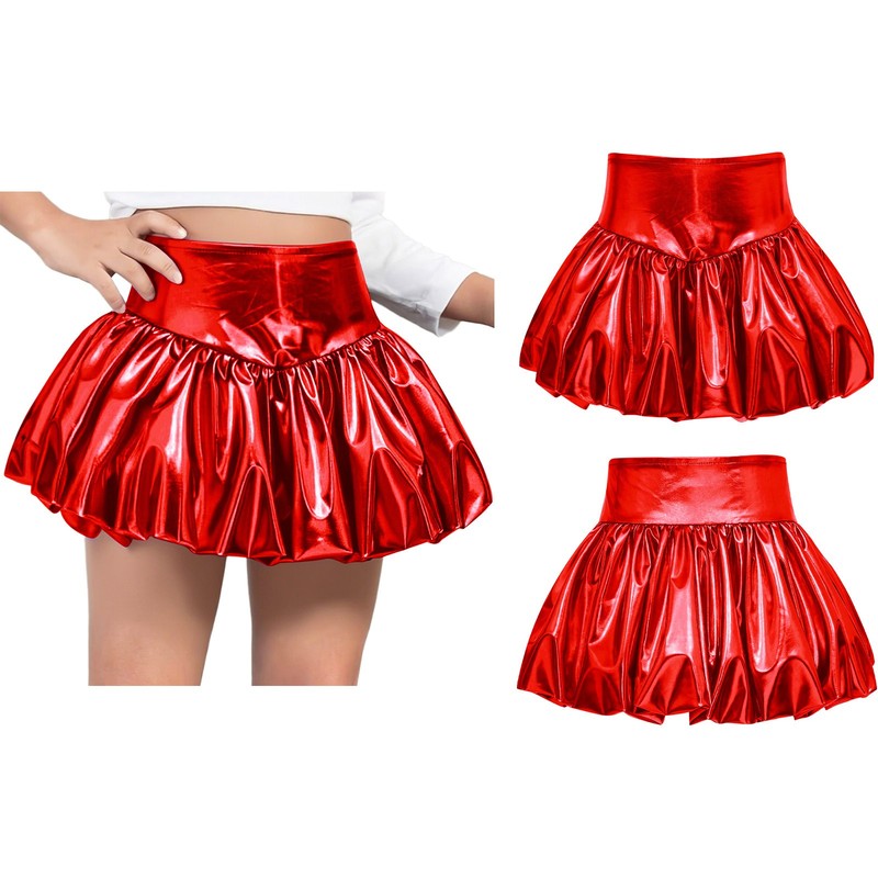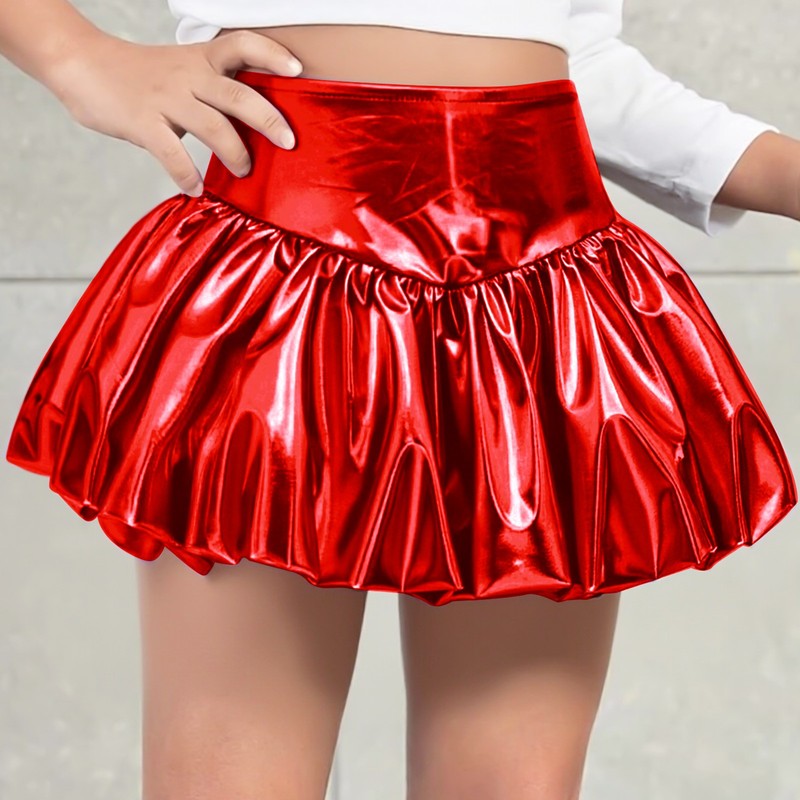 Girls Shiny Metallic Bubble Skirt Puffy Balloon Short Sparkly Glitter Mini Skirt