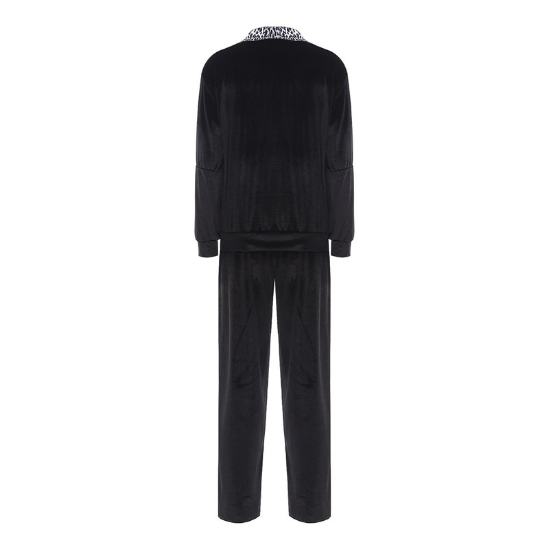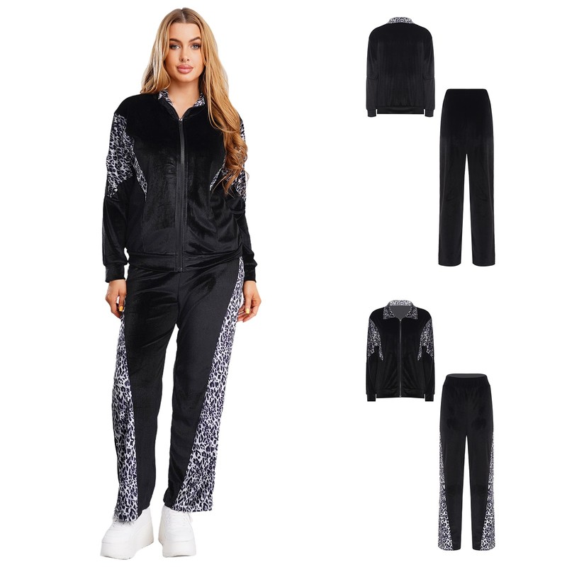 Womens Outfit Daily Set Casual Loungewear Front Zip Leopard Houseware Velvet