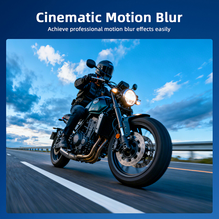 l Achieve cinematic motion blur with ease—manually adjust settings alongside ND filters to create dramatic motion effects
