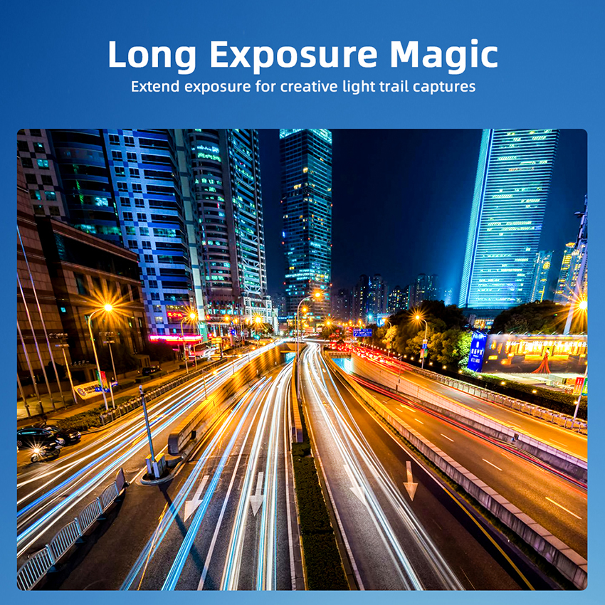 l Master long exposures and light trails—ND filters enable extended exposure times on the X5, capturing unique light effects like streaked car headlights in night scenes