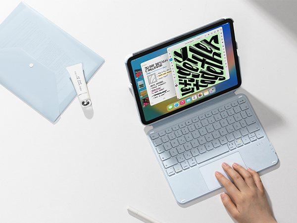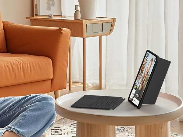 Die Tastatur und die iPad Schutzhülle sind magnetisch verbunden und lassen sich leicht in nur 1 Sekunde abnehmen. Das Rückenpaneel unterstützt sowohl horizontale als auch vertikale Ansichten und erfüllt Ihre Multi-Winkel-Anforderungen für Arbeit, Studium, Filme schauen, Zeichnen, Lesen und mehr.