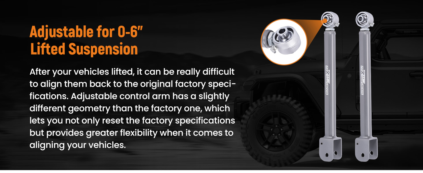 - Our control arms are meticulously engineered to deliver top-notch alignment, customizable ride height, and exceptional handling for your vehicle