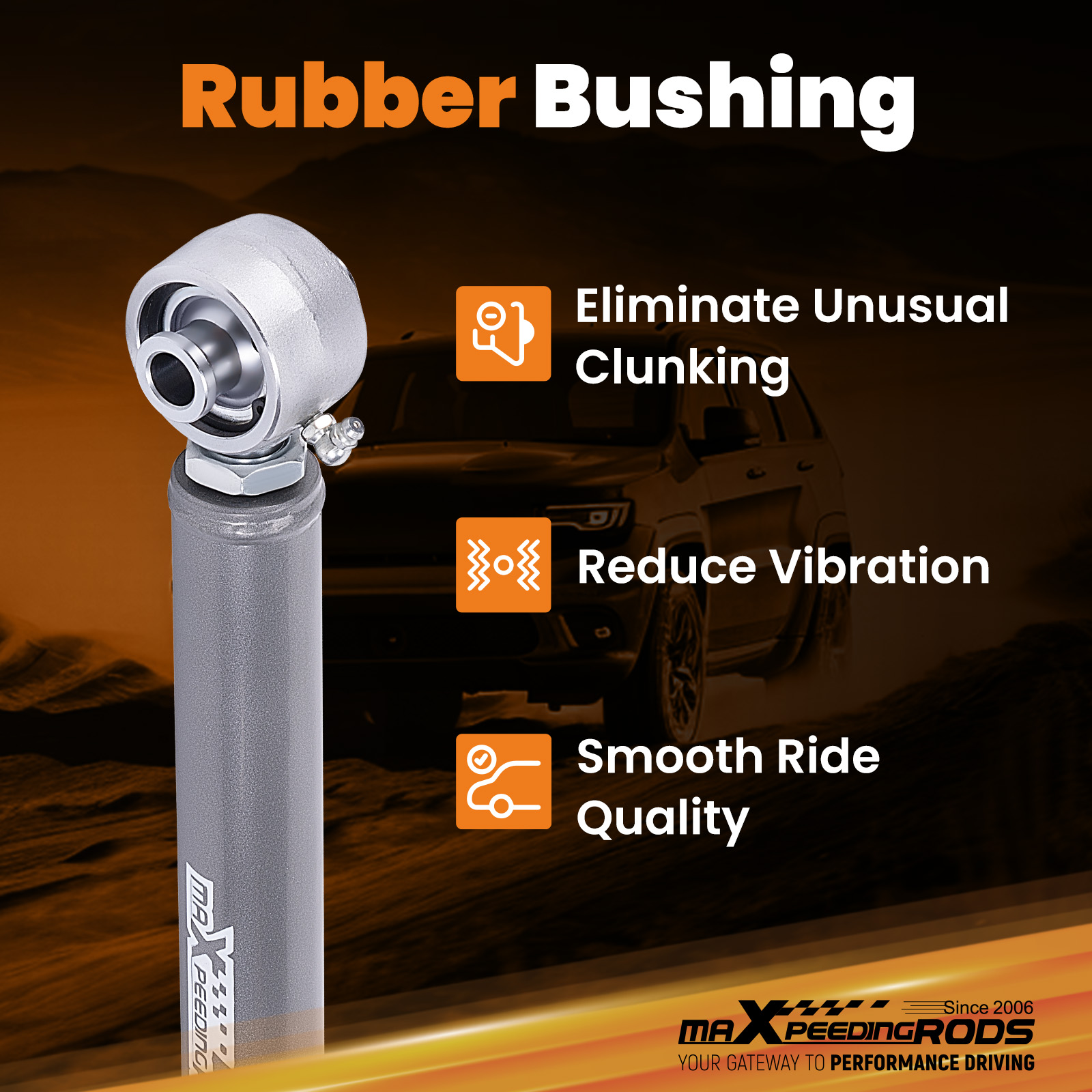 - Preinstalled rubber bushings on the control arms can effectively absorb noise and vibration