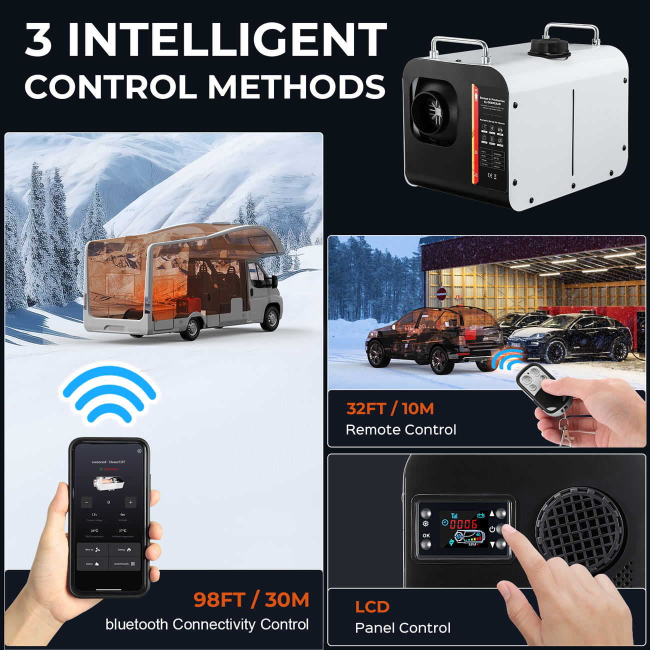 Bluetooth Control: Control the heater from up to 98 ft (30 m) away via a smartphone app.