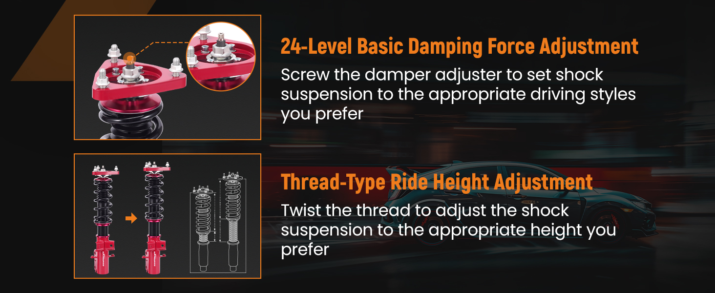 - Damping adjustable: Available, 24 levels of rebound damping force