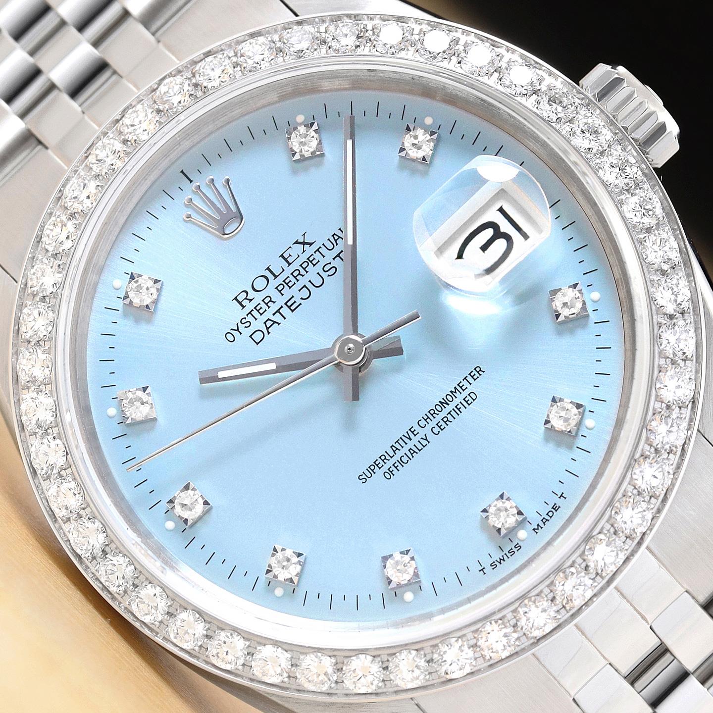 ROLEX DATEJUST 16234 FACTORY DIAMOND 1.6 CT BEZEL 18K GOLD STEEL ICE BLUE WATCH