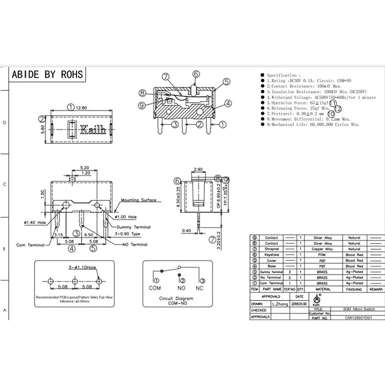 l Designed with gold contacts and grid-like format, the force is nominally 0.74N, and the relative force difference is very small