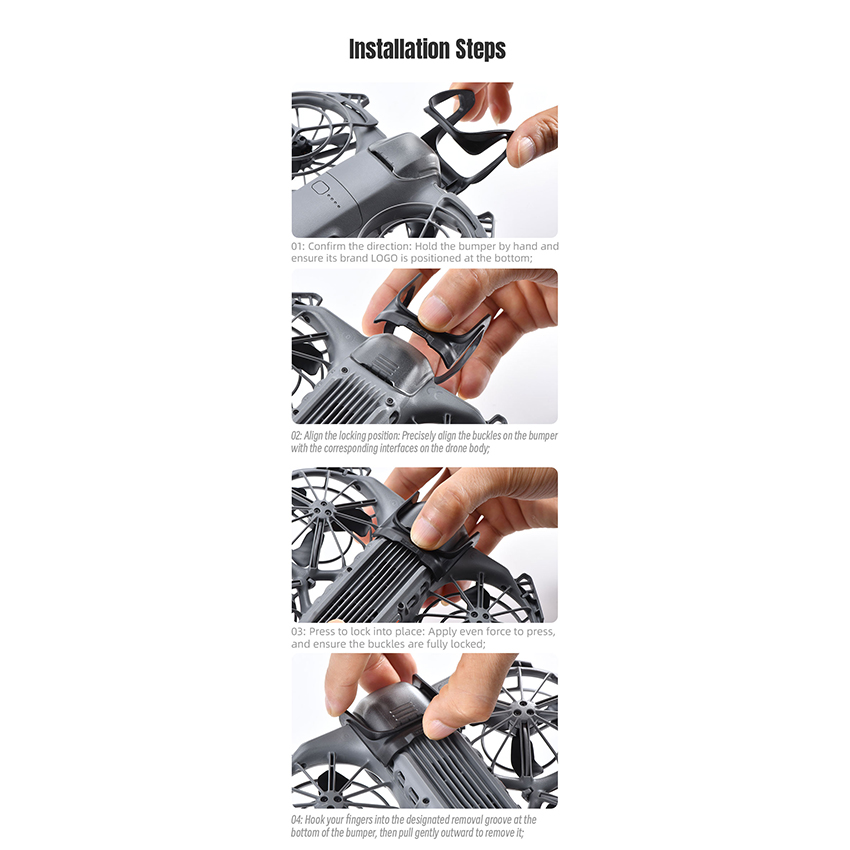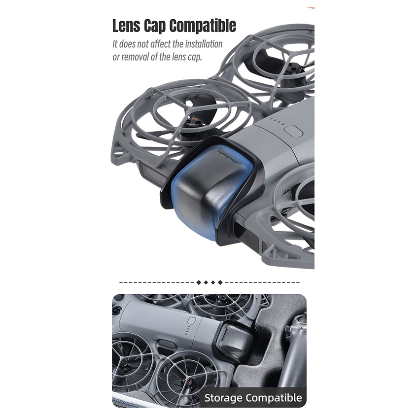 l Features an integrated fixed design for quick and convenient installation, eliminating the hassle of traditional screw-fastening. Simply align with the lens shape and snap into place. Installation will not scratch the drone body, does not interfere with gimbal protective cover installation, and does not affect the drone's flight performance