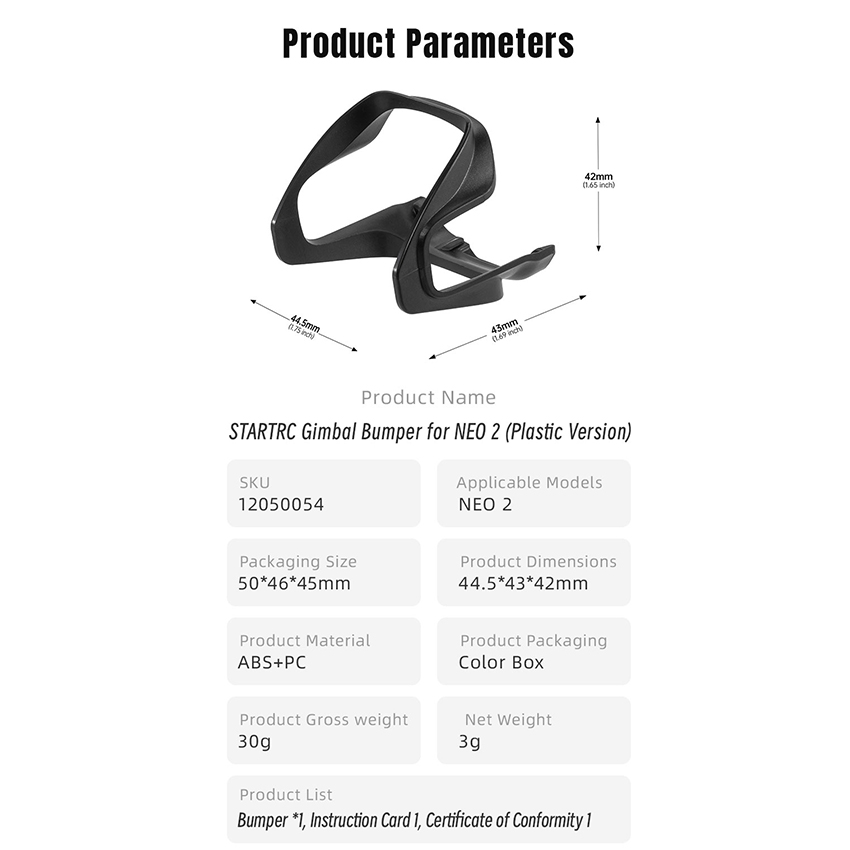 l Crafted from premium plastic materials, this lightweight, one-piece construction offers high strength and durability. Weighing just 3g (product specifications indicate net weight), its compact design imposes no additional burden on NEO2 flight, preventing wobbling or detachment during operation