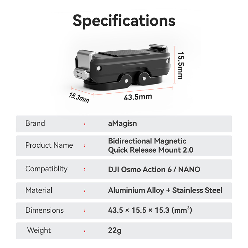 Dual-Direction Magnetic Quick-Release 2.0 Action Camera Accessories for Osmo Action 6/NANO