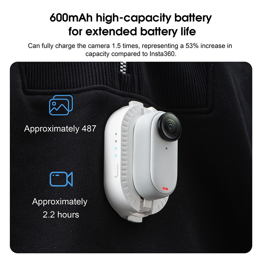 l Powerful Recharging, Peace of Mind: The built-in high-capacity battery provides at least 1.5 full charges for the Go3S per charge cycle. Supports charging while shooting, allowing creators to film with confidence anytime, anywhere