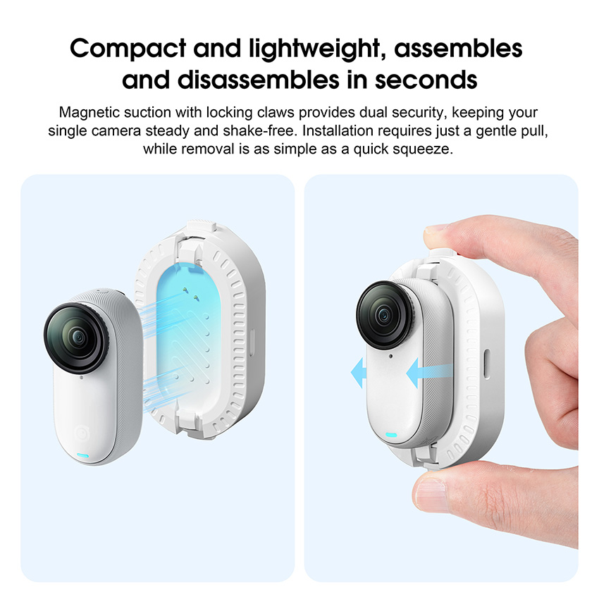l Multi-scenario compatibility, flexible expansion: The rear magnetic mount and bottom locking buckle are compatible with original magnetic lanyards, universal tripods, and other accessories. Whether for outdoor sports, travel photography, or daily life capture, it handles it all with ease