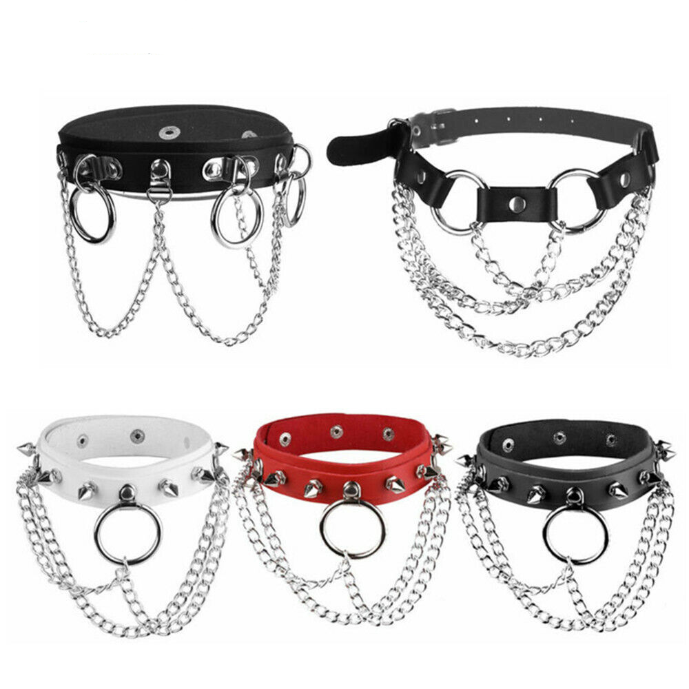 Fashion Leather Adjustable Choker Necklace Neck Collar with Ring Chain