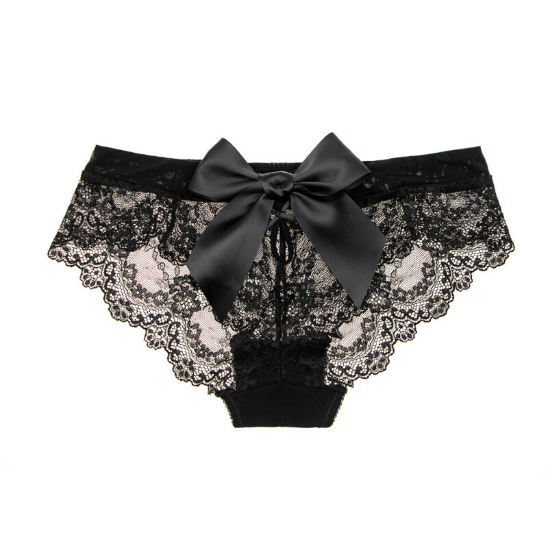 Sheer Lace Sexy Panty with Bow Floral Knickers Transparent Underwear
