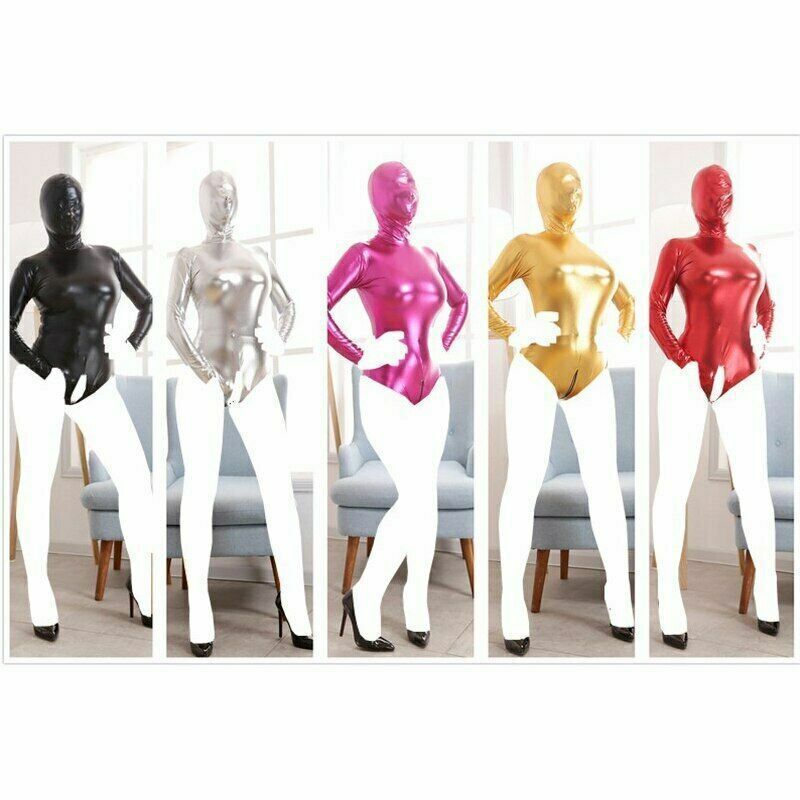 Ultra Shiny Zentai Bodysuit Zip Catsuit Cosplay Footed Jumpsuit Unitard Costume