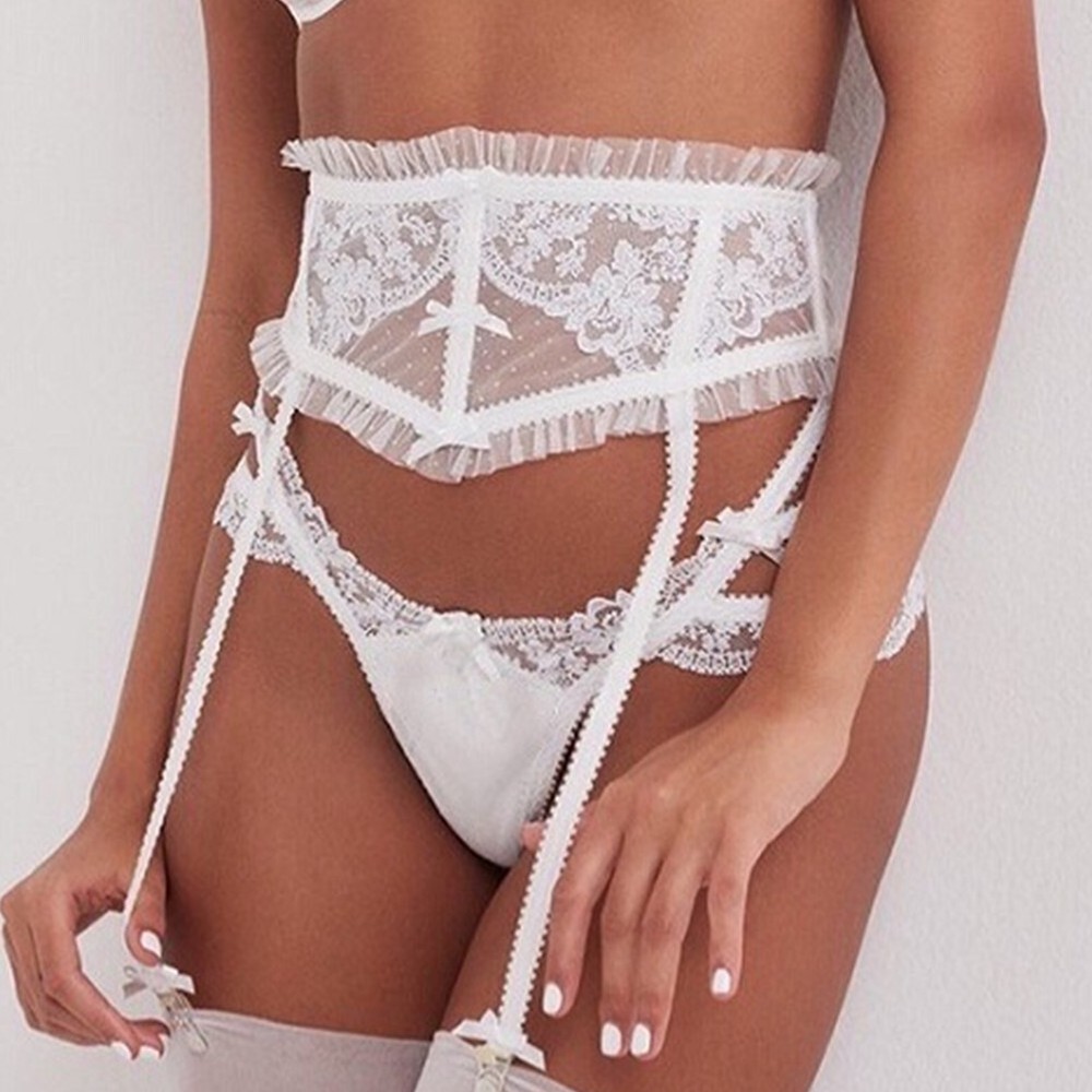 Lace See Through Sexy White Wedding Dress Elasticity Garter Belt