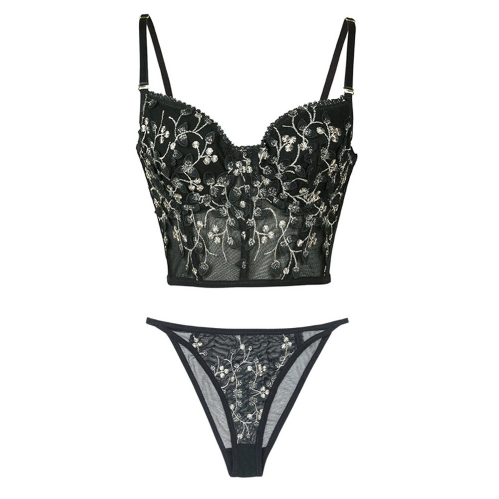 Embroidery Lace Bra Set Underwire Non-padded Sexy Transparent Underwear