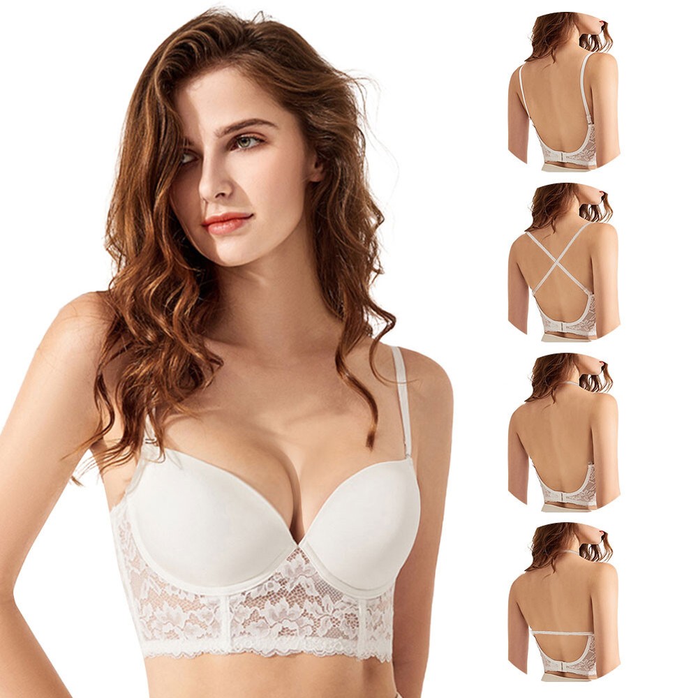 French Open Back U-Shaped Back Fishbone Lace Underwire Bra Invisible Underwear