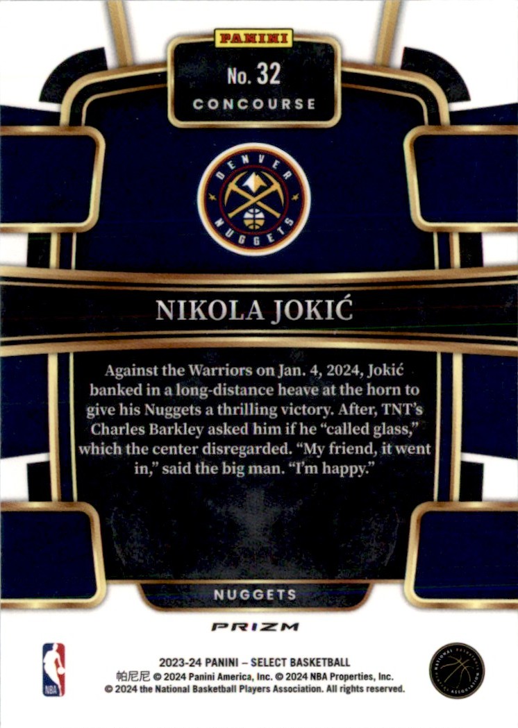 | Nikola Jokic 2023-24 Panini Select Blue Prizms #32 Denver Nuggets |