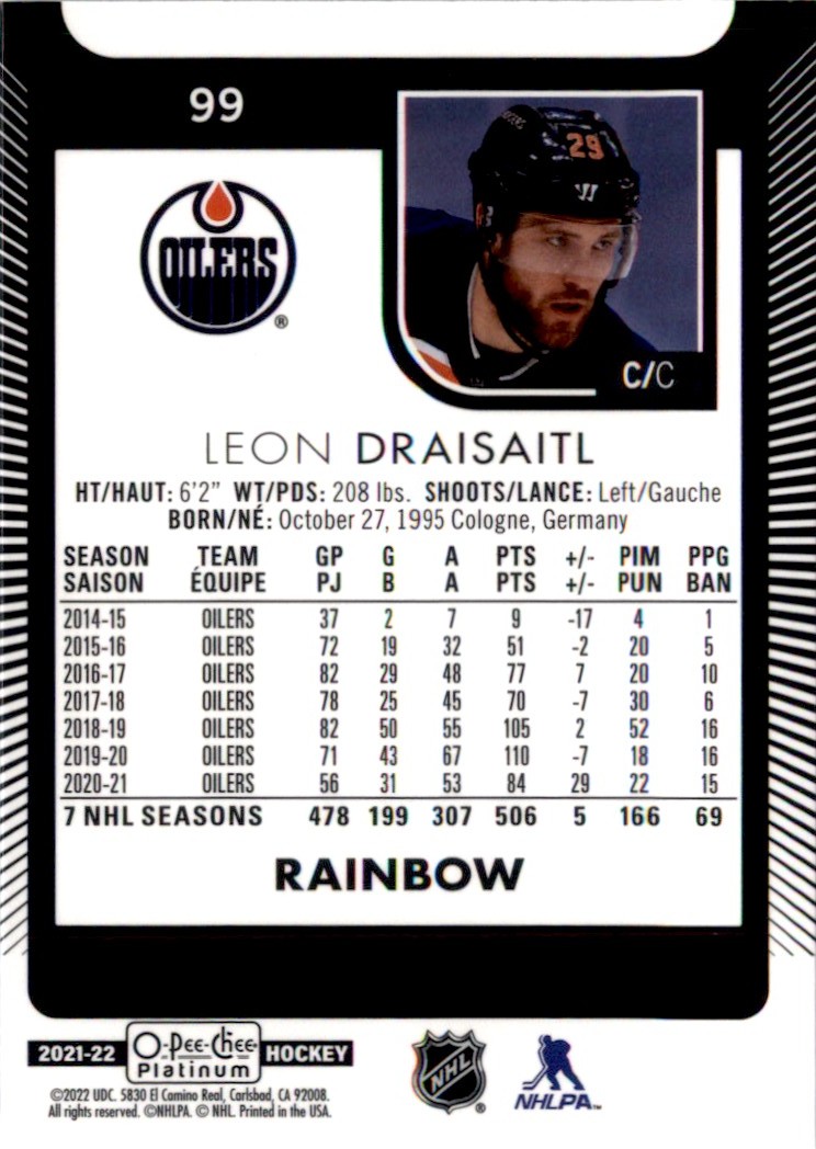 | Leon Draisaitl 2021-22 O-Pee-Chee Platinum Rainbow #99 Edmonton Oilers |