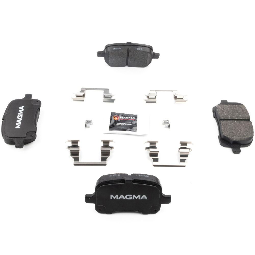 WHY MAGMA? - Today's harsh braking environments can create very high heat levels in your braking system which can reduce the vehicle's ability to stop. Extreme high temperatures can be reached in many braking situations such as - Stop and Go Traffic, Mountain Driving, Hauling or Towing, Emergency Stops, Spirited Driving and Long, Sustained Braking. At MAGMA Brakes, we use FIRE to fight FIRE. Our brake system components are made using advanced, state of the art techniques and treatments that ensure our brakes will stand up to the heat.MAGMA Premium brake pads feature...1. Scorched, copper-free friction formulations for optimal stopping power2. Heat-treated rubberized multi-layer shims for superior noise dampening3. Heat-tempered stainless steel hardware kits to restore the brake pad to caliper interface (where applicable)4. High-heat resistant brake lubricant included for lubricating critical points during pad installation