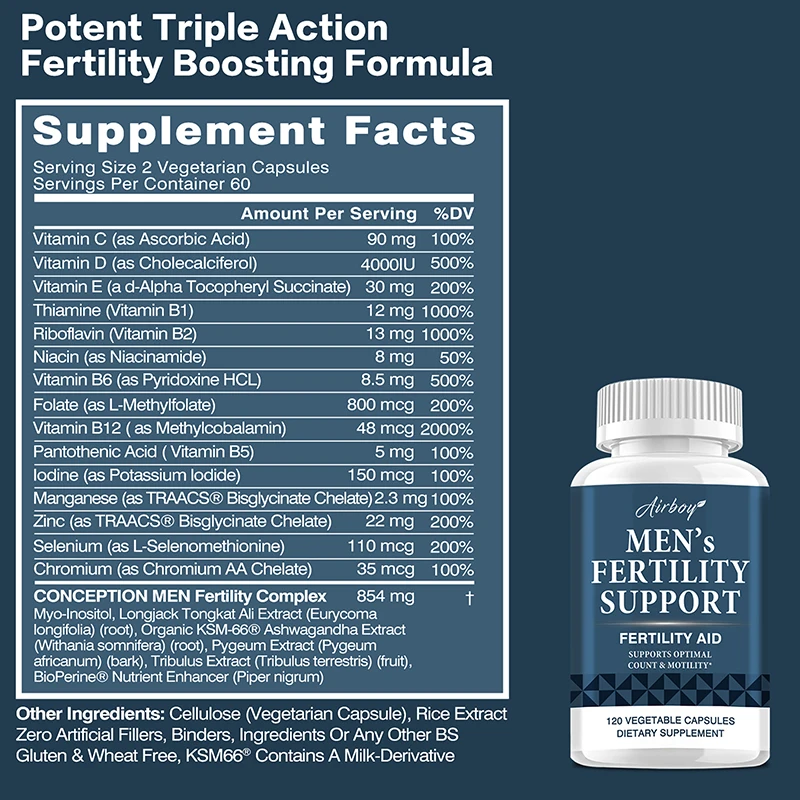 Optimal Sperm Health: Our blend includes Ashwagandha and Inositol to support healthy testosterone levels, sperm count and motility, and promote overall reproductive health.