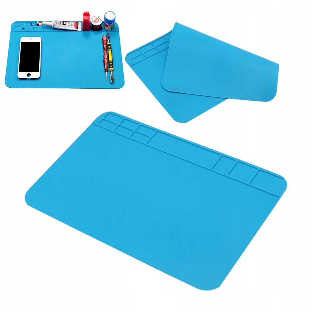 Ce tapis résiste à des températures élevées, jusqu'à 500 °C, ce qui permet des travaux de soudure et de réparation en toute sécurité. Conception multi-compartiments : Conçu avec plusieurs compartiments, par exemple pour les cartes mères, les pièces détachées et les composants, ce qui facilite l'organisation et le tri lors des interventions de maintenance. Emplacements spéciaux pour les vis : Il comporte des emplacements et des organiseurs spéciaux pour les vis, simplifiant ainsi le travail lors de la réparation de smartphones, tablettes, ordinateurs portables et autres appareils. Propriétés antidérapantes : Grâce aux propriétés antidérapantes du silicone, le tapis maintient les composants en place pendant la soudure.