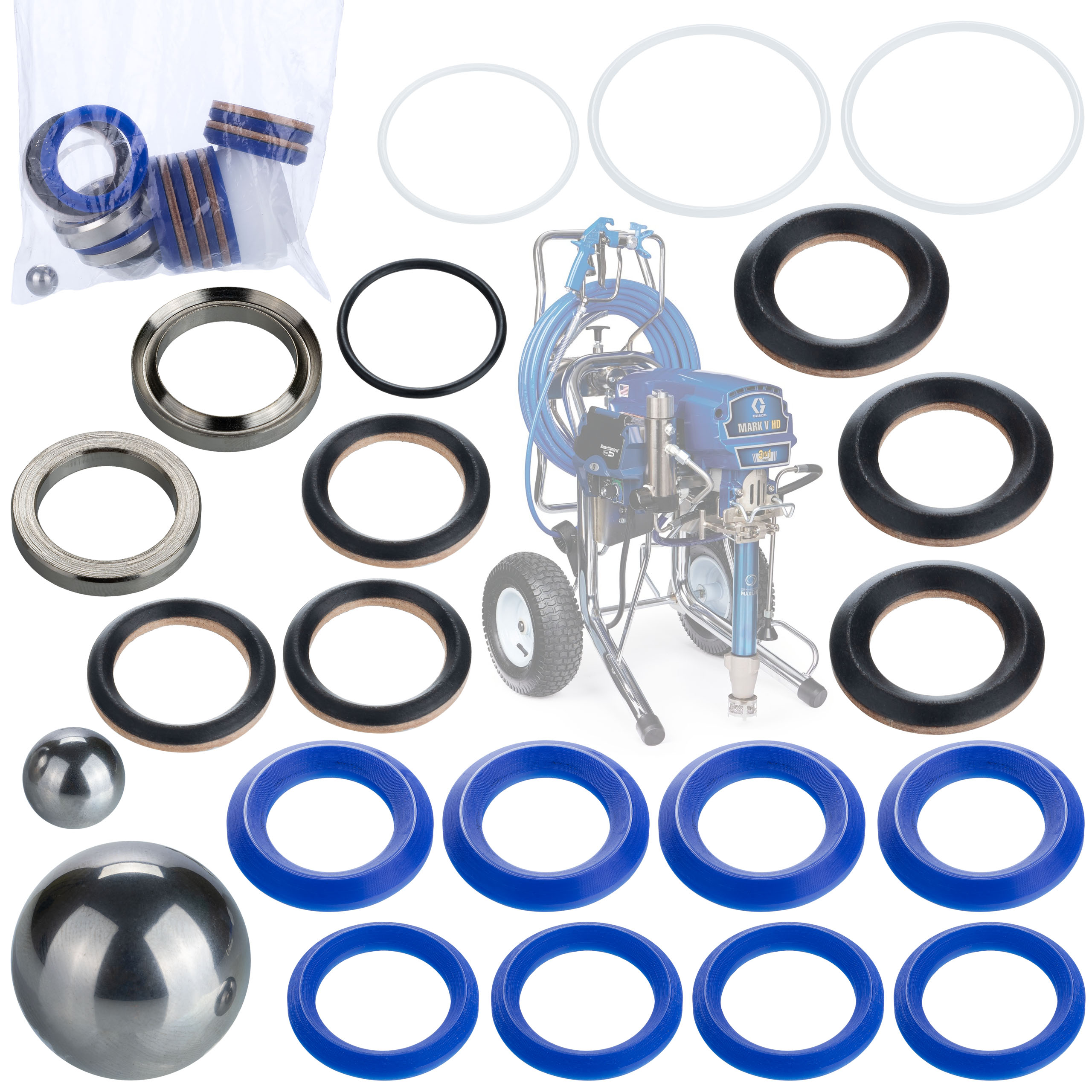 En fournissant un kit de réparation Graco complet pour les pistolets à peinture de la série MARK V avec billes d'acier, nous garantissons une remise en état efficace de votre pompe à plâtre.