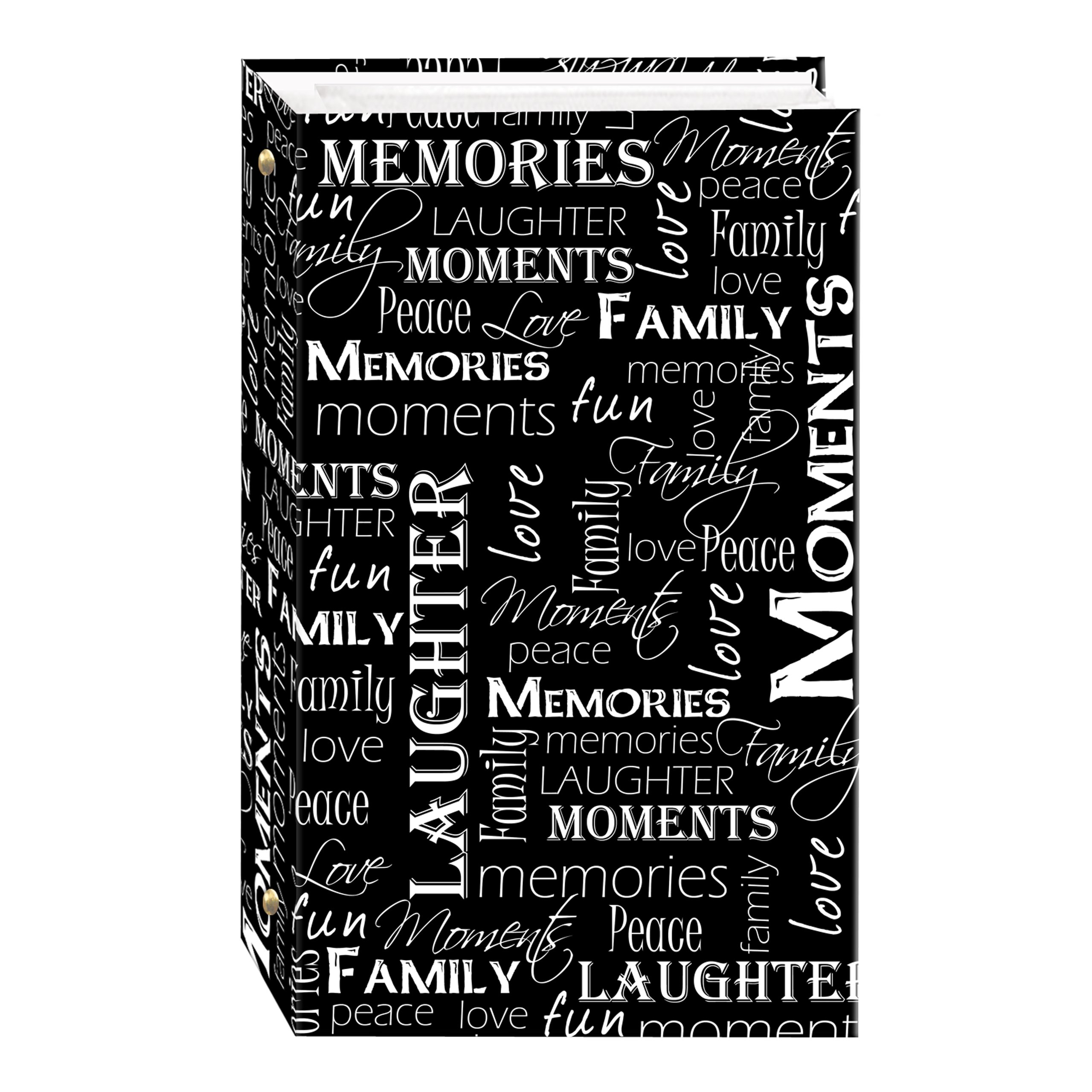 This photo album features a designer cover. It initially holds 300 photos up to 4 x 6 inches in clear pockets with a white paper background. The 3-ring binding accepts refills (style no. Rst-6). photos are displayed three per page. Archival, photo safe: acid, lignin and PVC free.