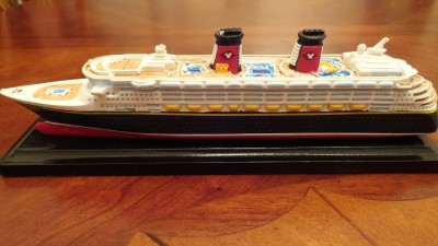 Fully sculptured miniature of the Disney Wonder cruise ship.