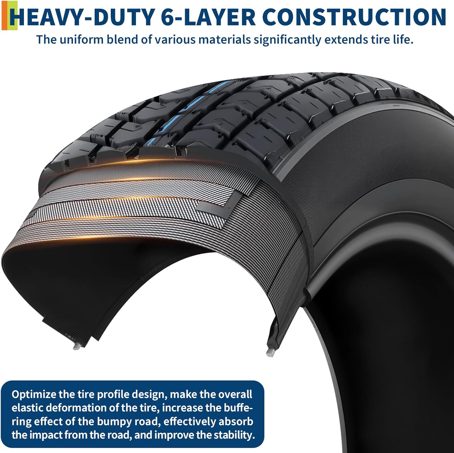 Smooth Ride: Bias ply design offers excellent shock absorption and sidewall stiffness, delivering a smooth, stable ride on rough terrain—ideal for boat trailer tires, utility trailer tires and wheels