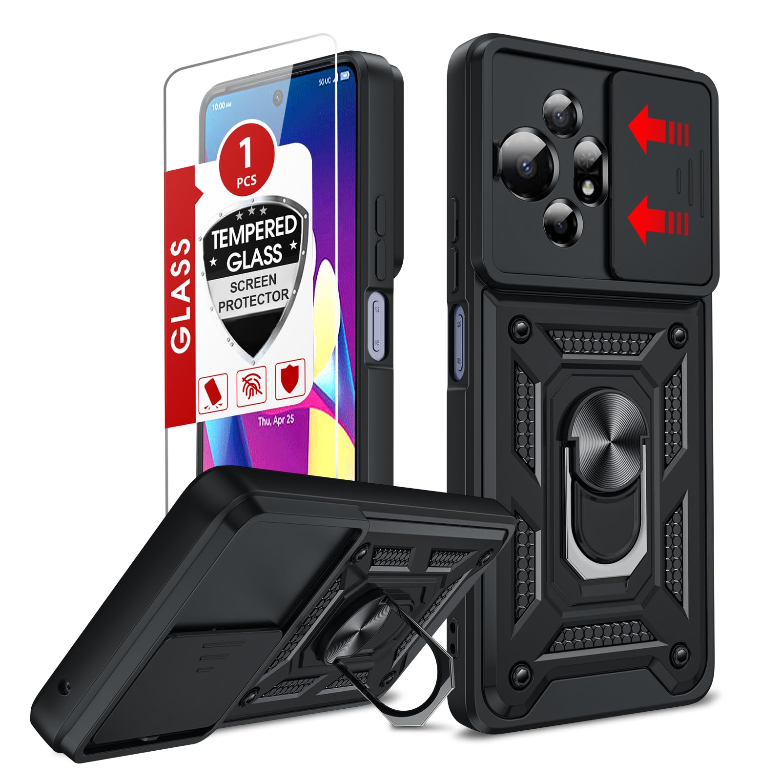 LeYi for TCL 50 XL-5G Phone Case: with Slide 6.78 inch (50 XL 5G), Black