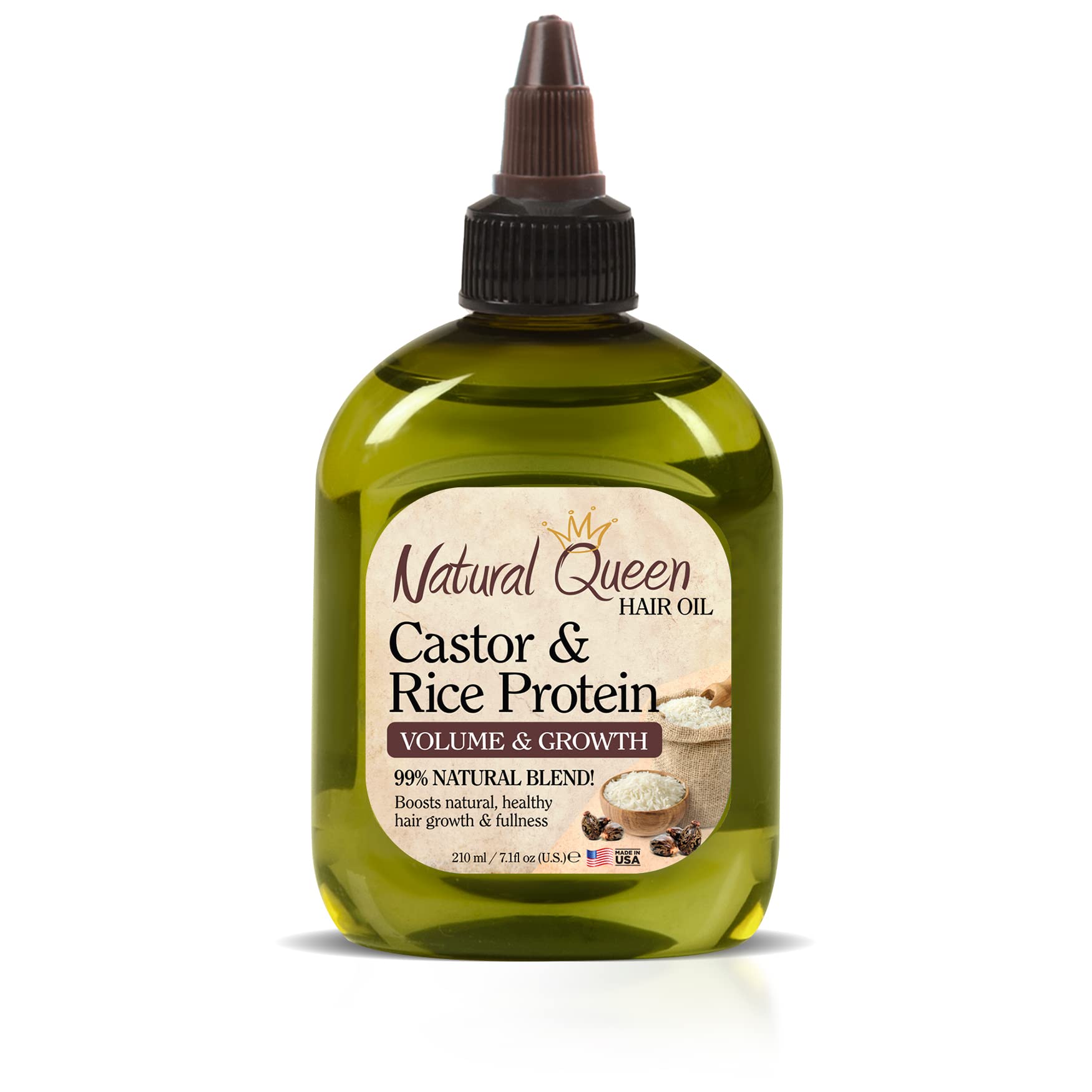 HYDRATING VOLUMIZING HAIR OIL: Natural Queen Volume & Growth Castor & Rice Protein Hair Oil is a 99% natural blend that boosts natural, healthy hair growth and hair fullness.