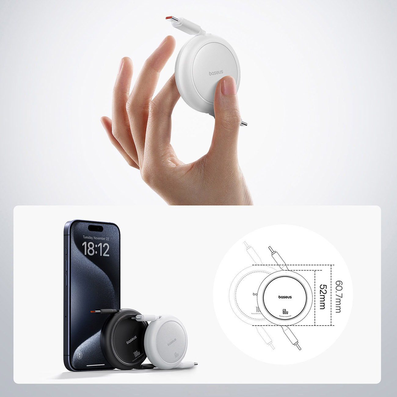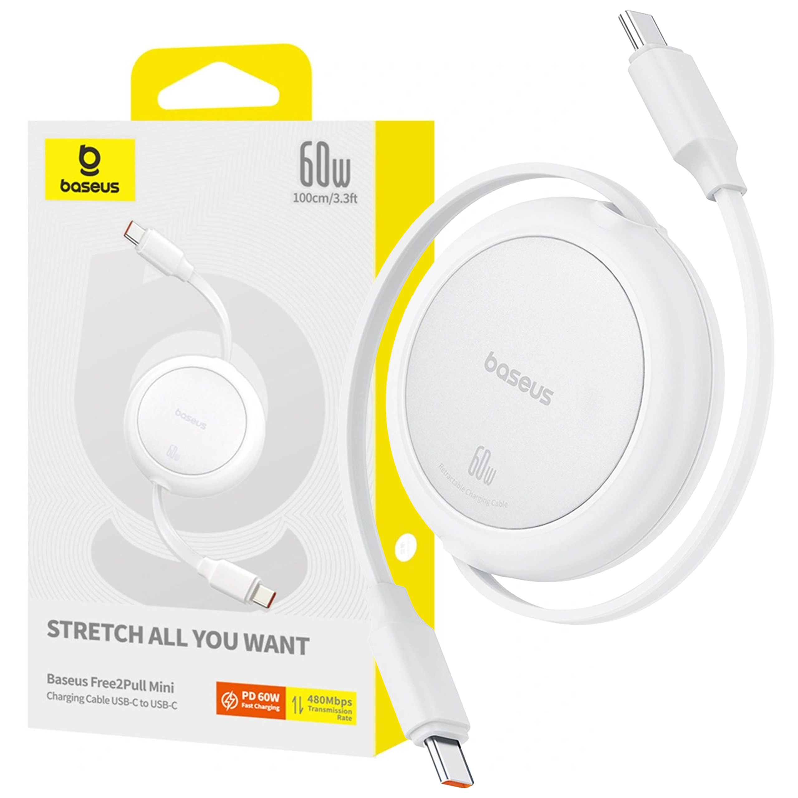 ⚡ Baseus Free2Pull USB-C zu USB-C Aufrollbares Kabel 60W PD 1m Weiß ⚡