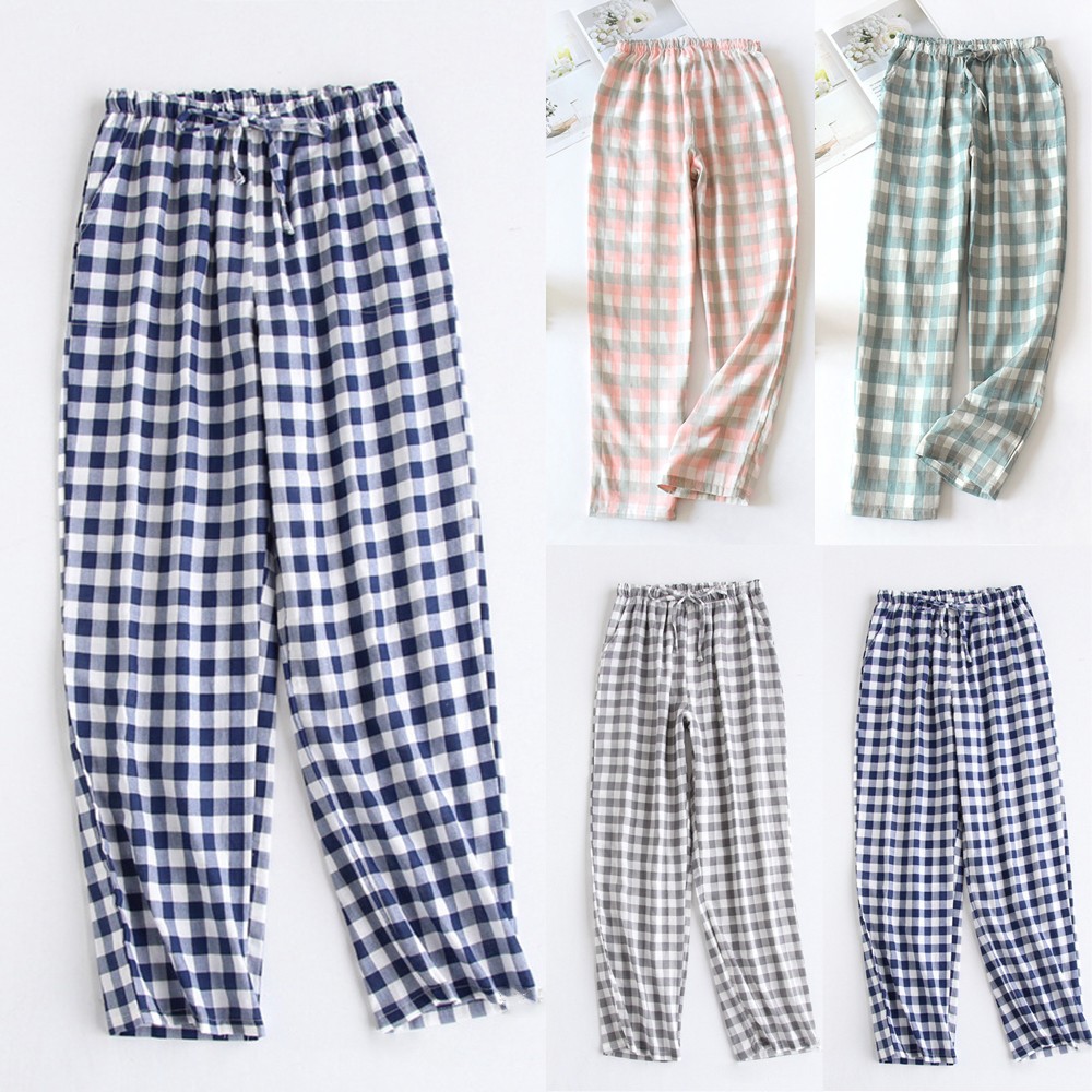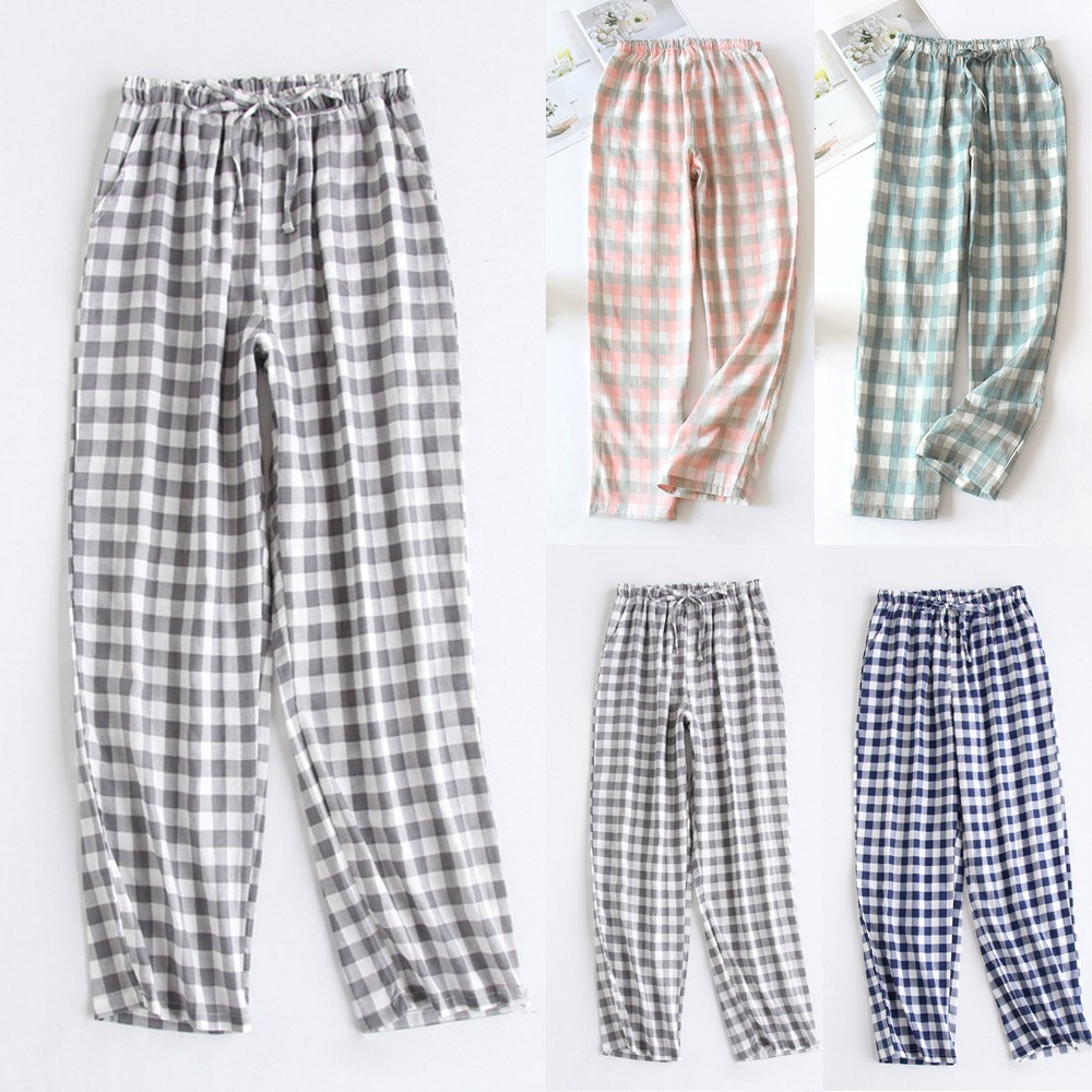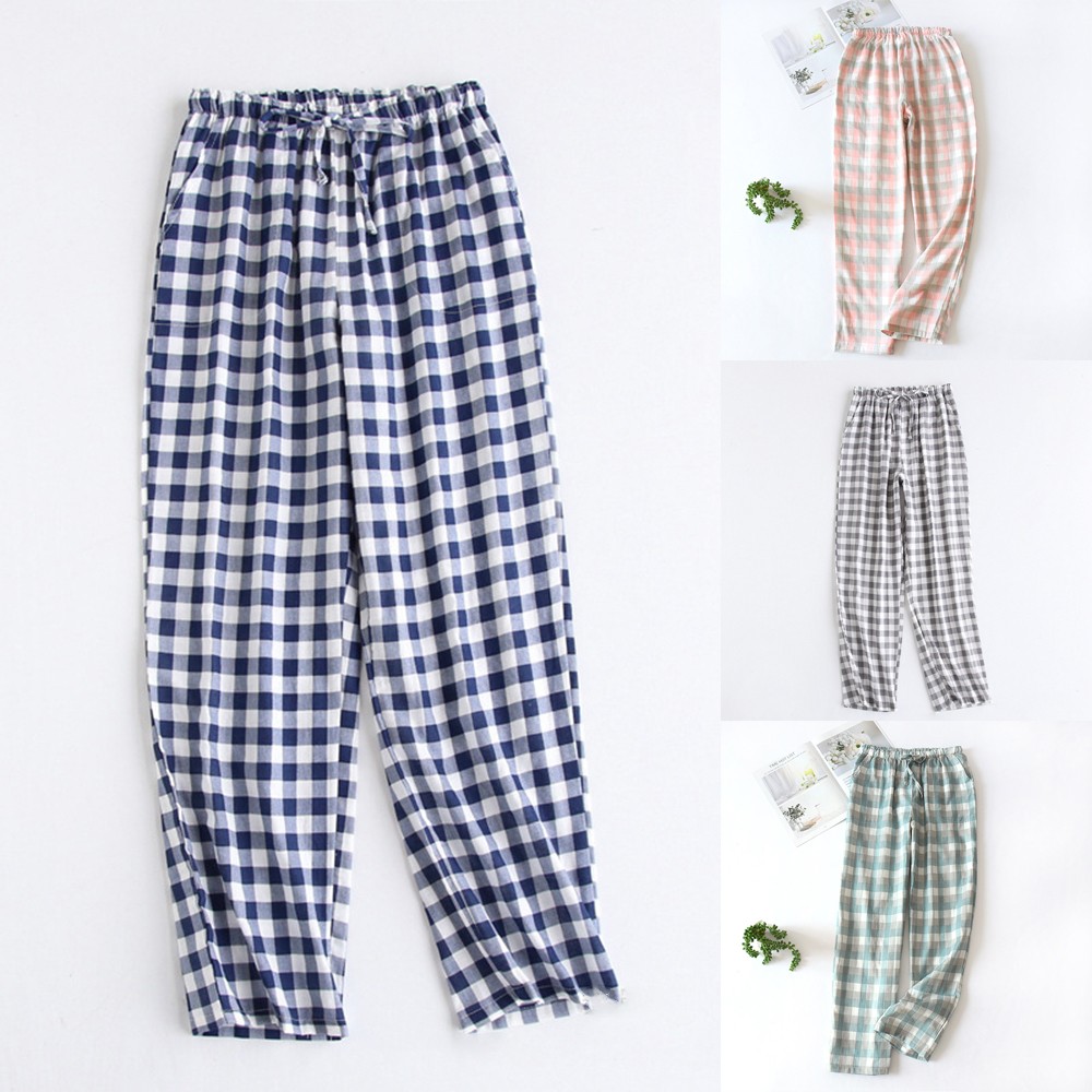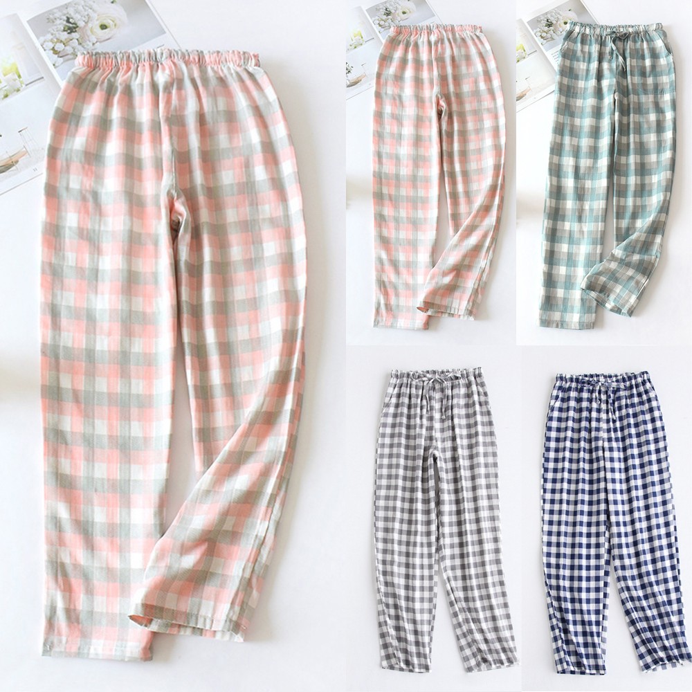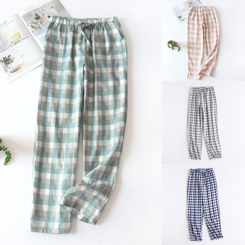 * Description de l'article : pantalon de pyjama pour femmes léger en coton doux à carreaux, bas de sommeil décontracté pour salon