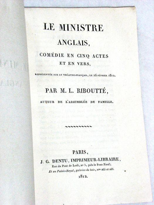 Le Ministre anglais, comédie en cinq actes et en vers, représentée sur le théâtre-français, le 26 février 1812.