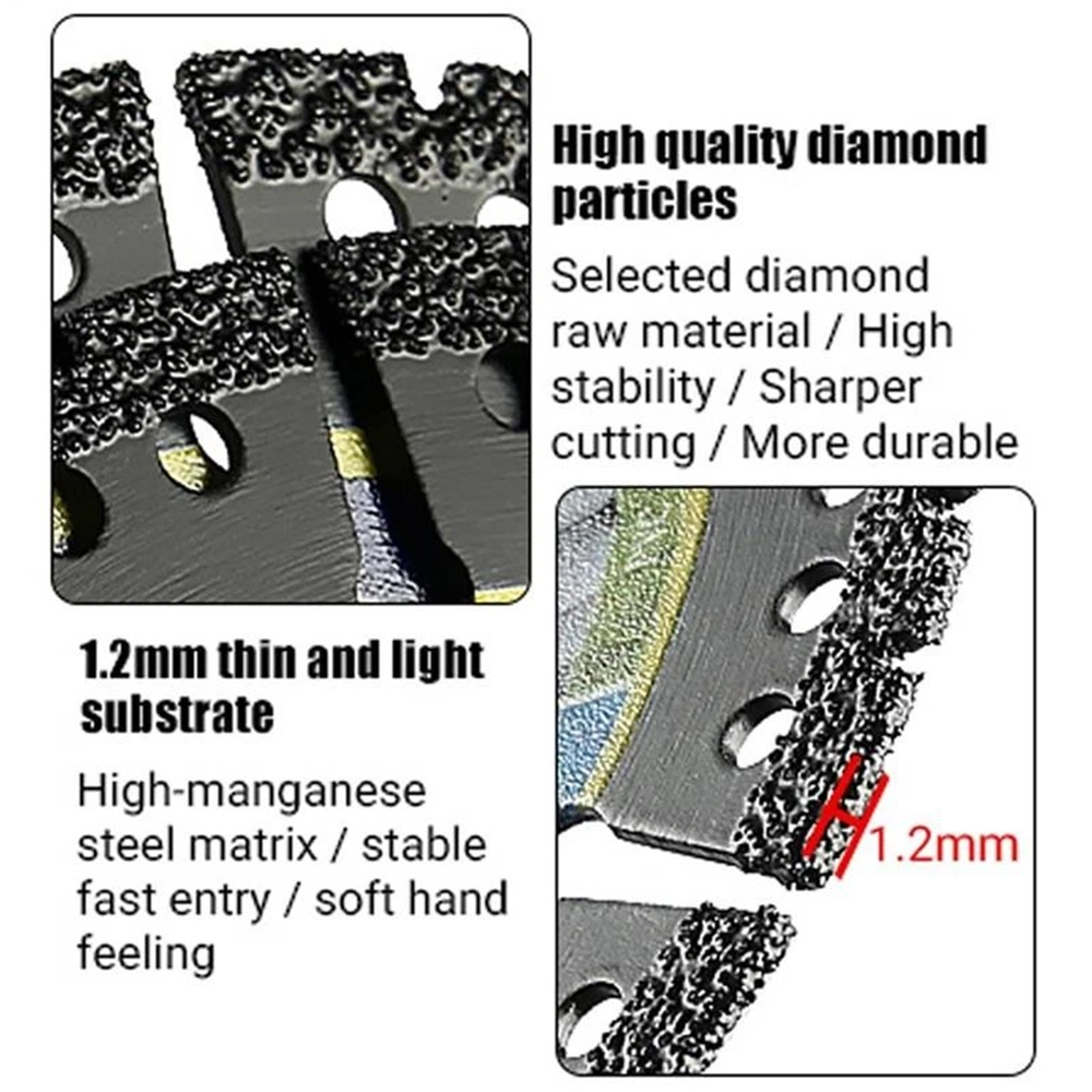 Designed for contractors and DIYers, these blades are engineered with premium diamond grains to deliver smooth, chip-free cuts in marble, tile, stone, concrete, steel, PVC, and wood.