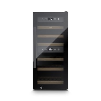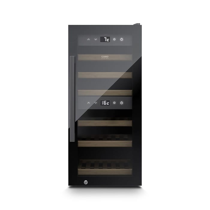 Caso WineExclusive 24 Smart Weintemperierschrank (EEK G, 6 ausziehbare Holzlagerböden, 2 Temperaturzonen, Sensor-Touch, bis zu 24 Flaschen, UV-Filter, LED Temperaturanzeige, Wi-Fi Modul/CASO-App, BxHxT 40 x 87 x 59,6 cm, Schwarz)