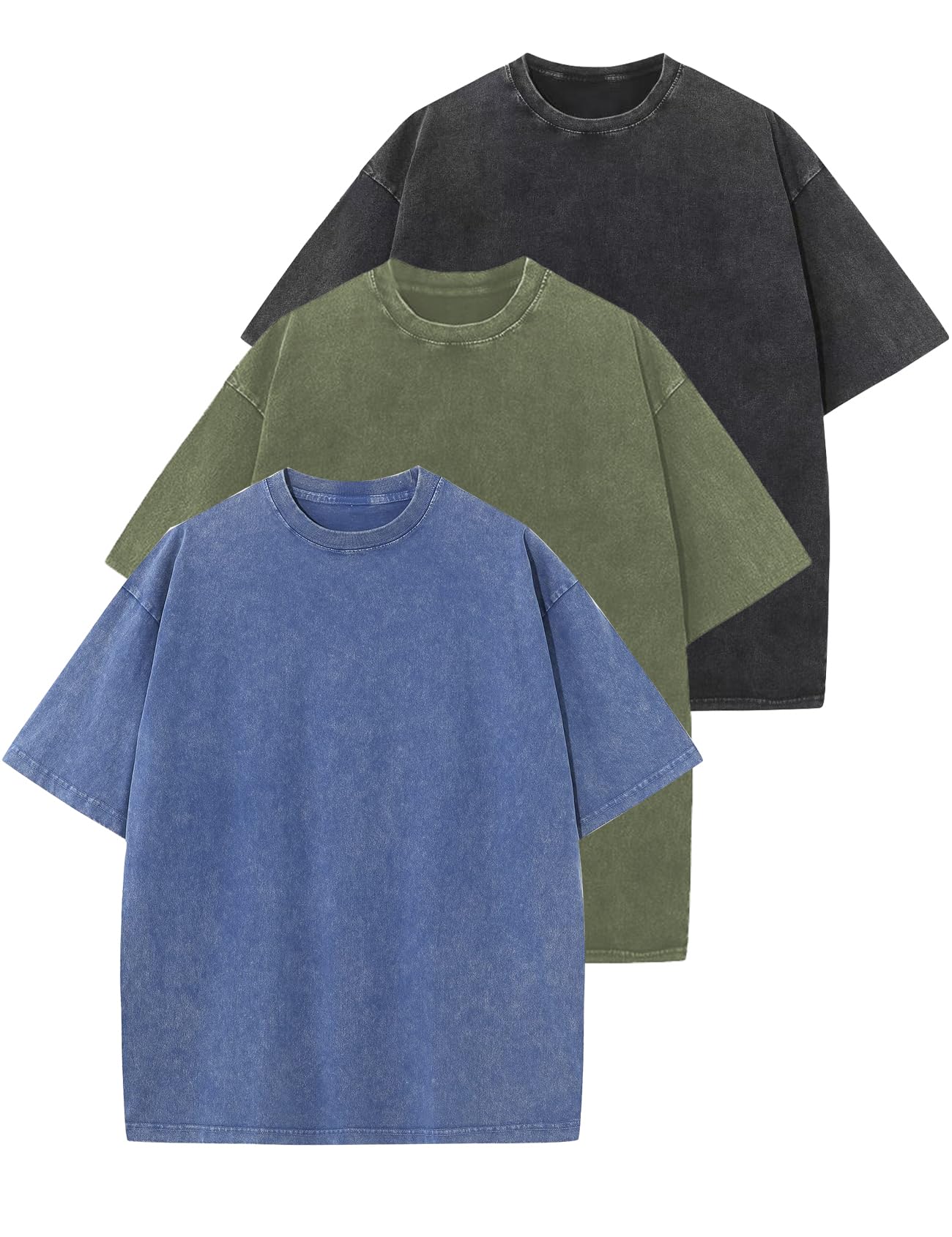 Arssm 3 Pack Men Oversized T Shirts Vintage Tee Loose Small, Black+blue+army