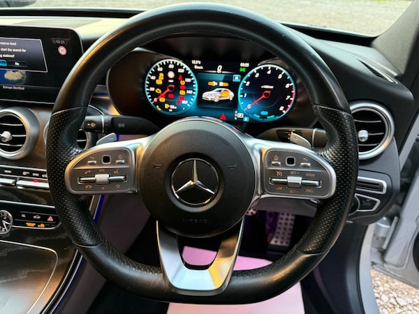 BLACK GRILLE+BADGES+MIRROR COVERS+BLACK ROOF+PRIVACY GLASS+WIDESCREEN NAVIGATION+FACELIFT+DECHROMED+HEATED SEATS+CAMERA+CRUISE+APPLE PLAY+CAMERA+PARK SENSORS+MERCEDES MAIN DEALER MAINTAINED+FINANCE FROM 8.9% APR This 2020 Mercedes Benz C Class C200 AMG Line Night Edition (Premium) offers a sophisticated driving experience with its Euro 6 compliant 1.5 litre petrol engine. This particular model benefits from a low CO2 emission rating, making it an environmentally conscious choice. The AMG Line Night Edition trim enhances its sporty appeal, while the Premium designation ensures a host of desirable features are included. Navigate tight spaces with ease thanks to the Active Parking Assist, which utilises front and rear sensors, complemented by a clear reversing camera. Inside, you'll find the convenience of wireless phone charging integrated into the front centre console's storage tray. The striking MULTIBEAM LED headlights provide exceptional illumination, ensuring excellent visibility on every journey. These features collectively highlight the advanced technology and thoughtful design present in this Mercedes Benz C Class.