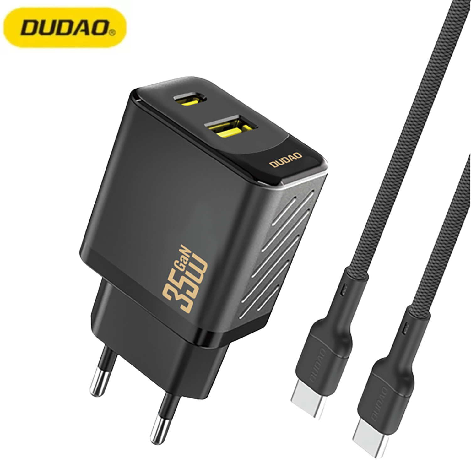 Das Dudao Netzteil A27MaxCEU PD QC 35W USB-A USB-C mit USB-C Kabel in Schwarz ist eine effiziente und kompakte Lösung für das tägliche Laden von mobilen Geräten. Mit einer Leistung von bis zu 35 Watt ermöglicht es das schnelle Aufladen von Smartphones, Tablets und anderen kompatiblen Geräten. Zwei Anschlüsse - USB-C und USB-A - ermöglichen das gleichzeitige Laden von zwei Geräten, was den Komfort zu Hause, im Büro und unterwegs erhöht. Die Unterstützung von Power Delivery und Quick Charge gewährleistet ein effizientes und stabiles Laden. Im Lieferumfang ist ein 1 m langes USB-C Kabel enthalten, sodass das Netzteil direkt nach dem Auspacken einsatzbereit ist. Dies erweitert die Anwendungsmöglichkeiten und erhöht die Benutzerfreundlichkeit erheblich. Wichtige Spezifikationen: - Marke: Dudao - Modell: Dudao A27MaxCEU - Typ: Netzteil - Maximale Leistung: 35 W - Anschlüsse: USB-C, USB-A - Ladetechnologien: Power Delivery, Quick Charge - Verpackungsinhalt: Netzteil, 1 m USB-C Kabel - Material: Kunststoff - Farbe: Schwarz Hauptvorteile des Dudao A27MaxCEU Ladegeräts: - 35 W Leistung: Schnelles und effizientes Laden von mobilen Geräten. - Zwei USB-Anschlüsse: Möglichkeit, zwei Geräte gleichzeitig zu laden. - Unterstützung von PD und QC: Kompatibilität mit beliebten Standards für schnelles Laden. - Kompakte Bauweise: Leichtes Design erleichtert Transport und Lagerung. - USB-C Kabel im Lieferumfang: Einsatzbereit ohne zusätzliches Zubehör. Schnelles Laden mit 35 W Leistung: Die maximale Leistung von 35 Watt ermöglicht das effiziente Laden von Smartphones, Tablets und anderen Geräten. Zwei USB-Anschlüsse - USB-C und USB-A - machen es möglich, zwei Geräte gleichzeitig ohne Verlust an Komfort und Funktionalität zu laden. Die Unterstützung von Power Delivery und Quick Charge ermöglicht das schnelle Laden zahlreicher Geräte. Kompakte Größe: Die geringen Abmessungen machen das Netzteil zu einem idealen Begleiter auf Reisen. Ein USB-C Kabel ist im Lieferumfang enthalten, was einen schnellen Start des Ladevorgangs ermöglicht.