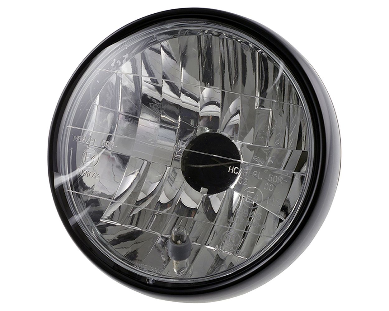 6-1/2 Zoll Klarglas Hauptscheinwerfer, Metallgehäuse schwarz seidenmatt, zur seitlichen Befestigung, H4 Einsatz mit 165 mm (6 1/2 Zoll) Klarglas Hauptscheinwerfer,Metallgehäuse schwarz seidenmatt, zur seitlichenBefestigung, H4 Einsatz mit Standlicht.- ohne H4-Birne- mit Standlichtbirne- mit Gummiabdeckkappe (Abdeckung Glühlampe auf Einsatz)- mit H4-Stecker