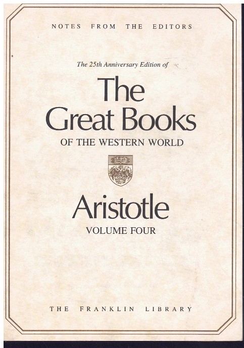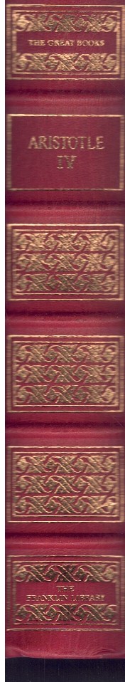 Date: 0 Features: Volume 4 only. Full red leather binding, all edges gilt, silk moiré endpapers, five raised spine bands. Includes publisher booklet produced for this "25th Anniversary Edition of the Great Books of the Western World." Contents: On The Heavens, On Generation and Corruption, Meteorology, Biological Treatises.