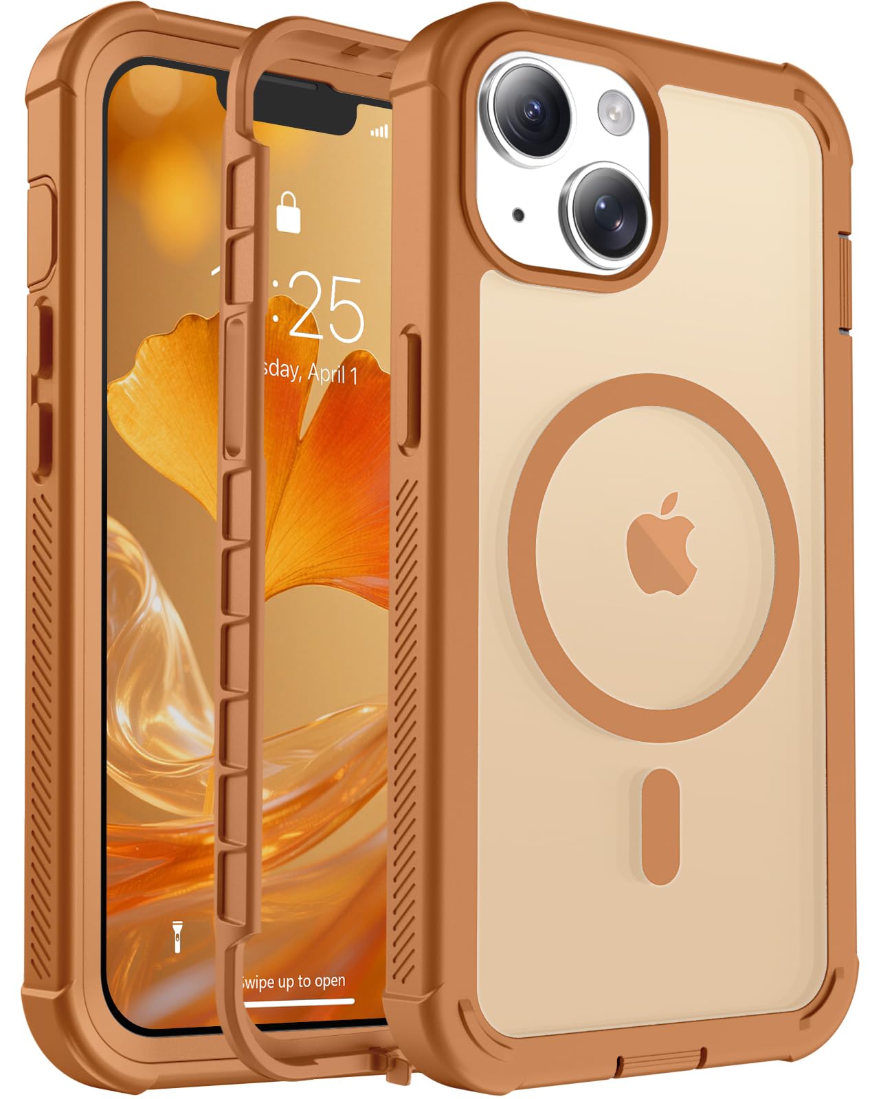 jaroco Magnetic for iPhone 13 Case, [Compatible with MagSafe][Military Grade Drop Protection][Heavy Duty Protection][Non-Slip][Shockproof] 2-Layer Durable Bumper Phone Case 6.1''-Brown