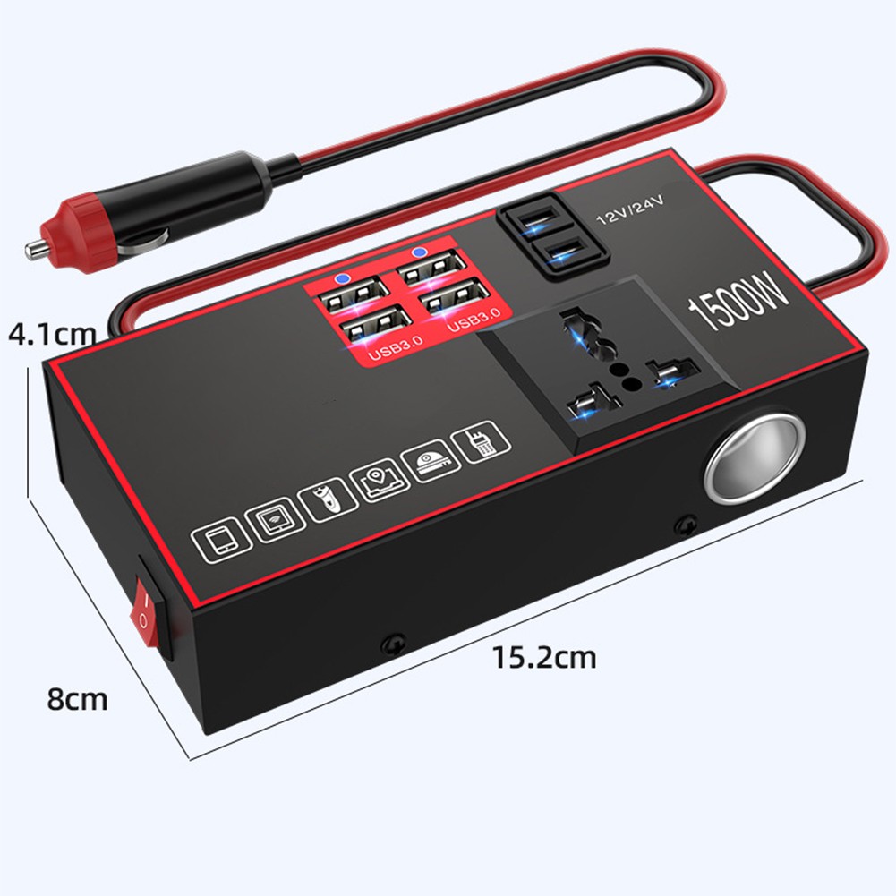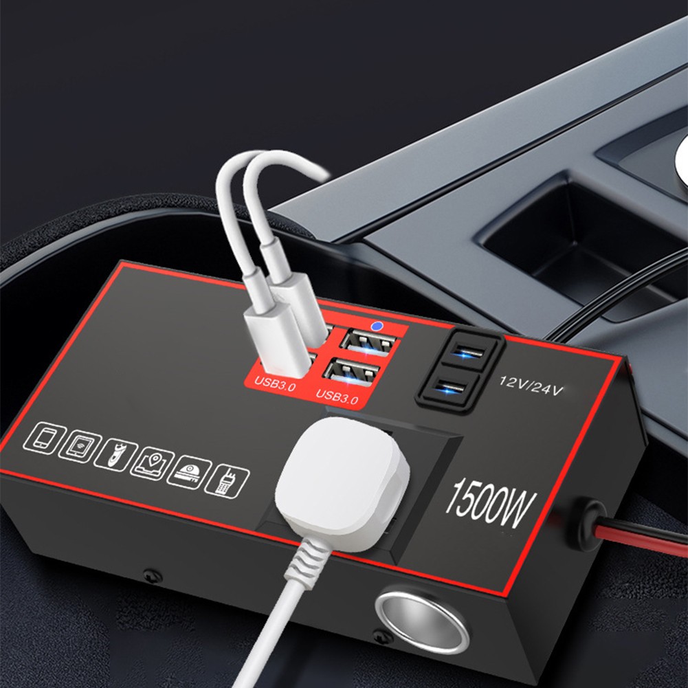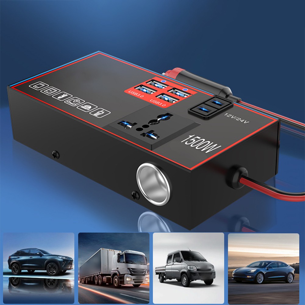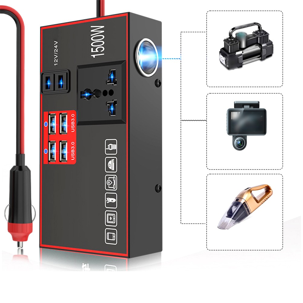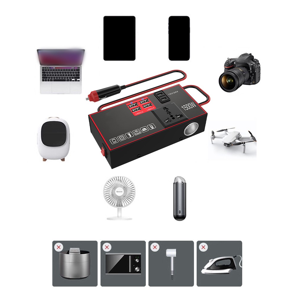 Onduleur de puissance de voiture 1500W DC 12V/24V à 220V pour charge multi-appa