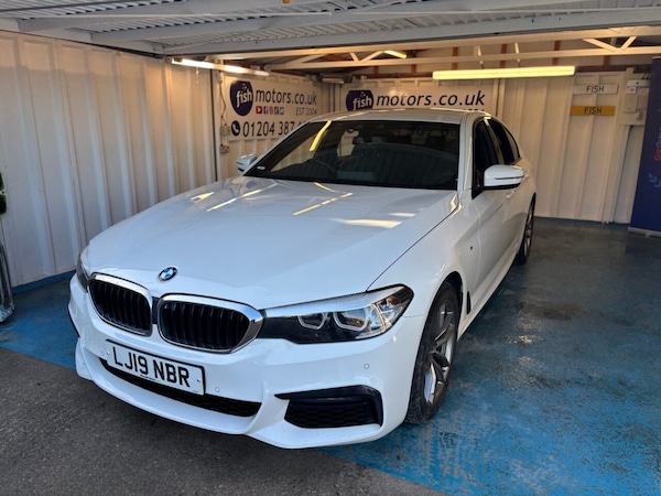 2 FORMER KEEPERS+HISTORY+MEDIA+FULL SPORTS LEATHER SEATS+PRIVACY+CLIMATE+PARK CONTROL+DIGITAL DASH+18" ALLOYS+BLUETOOTH+NAV+CRUISE+HEATED FRONT SEATS+HPI CLEAR+VOSA MOT HISTORY+FULL DEALER FACILITIES+FINANCE ARRANGED+CLEAN +GREAT DRIVE+GOOD MPG+RAC CHECKED ,The car is in very good condition in and out . Bodywork and interior clean for age and mileage . Interior is clean and tyres good ,Engine and gearbox in good order. This 2019 BMW 5 Series 520i M Sport boasts an MOT valid until November 2026, offering excellent peace of mind. This Euro 6 compliant model features a 2.0 litre petrol engine and is presented in the sporty M Sport trim. Inside, you will find a host of convenient features including a Through Loading System for added practicality, PDC with front and rear sensors for easy parking, and dual zone automatic air conditioning for personalised comfort. Enjoy the warmth of front seat heating and stay connected on the go with Bluetooth hands free and USB audio interface. The BMW 520i M Sport stands out with its low CO2 emissions, indicating a more environmentally conscious choice compared to many vehicles in its class. The inclusion of features like Park Distance Control and heated front seats further enhances the driving experience, demonstrating a thoughtful specification that prioritises both ease of use and occupant comfort. This combination of efficient performance, advanced technology, and the assurance of a long MOT makes this 5 Series a compelling option. WE AS A COMPANY PRIDE OURSELVES IN GIVING THE BEST POSSIBLE SERVICE AS OUR 1000,S OF GREAT REVIEWS SHOW , SEE OUR TESTIMONIALS PAGE AT TODAY ! IF YOU REQUIRE MORE PICTURES AND AN IN DEPTH VIDEO PLEASE CONTACT OUR FRIENDLY SALES TEAM WHO WILL BE MORE THAN HAPPY TO HELP YOU . CONTACT , AND FACEBOOK MESSANGER . NATIONWIDE DEILVERIES AVAILABLE ON REQUEST , PLEASE CONTACT US FOR MORE INFORMATION . PERSONAL VIDEO AVAILABLE FOR ANY CAR BY REQUEST - FISH MOTORS BURY NEW ROAD BOLTON BL2 2BD. , ALL FORMS OF PAYMENT ACCEPTED, FINANCE ARRANGED LOW APR, CLICK OUR WEBSITE LINK FOR MORE CHOICE ! ALL OUR CARS AND INFORMATION ARE CHECKED HOWEVER PLEASE NOTE INPUT ERRORS CAN OCCUR AND IT IS IMPORTANT YOU CHECK WITH A MEMBER OF STAFF THE MILEAGE , CONDITION AND SPECIFICATION OF THE CAR BEFORE PURCHASE . .18in Alloy Wheels - Light M Double Spoke - 662M, 20GB Hard Disc Drive HDD Memory, Access to BMW Connected Plus (12 Month Subscription From New), Acoustic Glazing, Active Air Stream Kidney Grille, Active Guard, Air Conditioning - Automatic - Dual Zone Control, Airbags, Alarm System - Thatcham 1 with Remote Control and Engine Immobiliser, All Round Anti-Corrosion System, Alpine White, Ambient Lighting, Anti Roll Bars - Front and Rear, Armrests, Battery in Luggage Compartment with Jump Start Facility in Engine Bay, Bluetooth Hands Free with USB Audio Interface, BMW ConnectedDrive Online Services, BMW ConnectedDrive Services, BMW Emergency Call, BMW Professional Radio with Single CD Player - MP3 and DVD Playback Compatibility, BMW TeleServices, Brake Force Display, Child Seat ISOFIX Attachment - Outer Rear Seats - includes Top Tether, Control Display - 10.25in Colour Touch Sensitive Display Screen, Crash Sensor - Activating Central Locking - Hazard Warning Lights - Fuel Cut Off - Interior Lights, Cruise Control with Brake Function, Cup Holders - Front x2 and Rear x2, DAB Digital Radio, Dakota Leather with Exclusive Stitching - Black with Black Interior, Daytime Running Lights - LED, Deformation Zones - Front and Rear, Digital Cockpit, Door Sill Inlays - BMW M Designation Illuminated, Drive Performance Control with ECO PRO - Comfort and Sport Modes, DSC - Dynamic Stability Control - Stabilises the Vehicle in Extreme Situations - Controls Traction, Dynamic Brake Lights with LED Technology, Electric Windows - Front and Rear with Open-Close Fingertip Control - Anti-Trap Facility and Comfort Closing Function, Electro Mechanical Parking Brake With Automatic Drive-Away and Auto-Hold Function, Engine Cover with TwinPower Turbo Designation, EPS - Electric Power Steering with Servotronic, Exhaust Tailpipes - Single - Left and Right - Chrome - Quadrilateral, Exterior Door Handle Illumination, Exterior Mirrors - Electrically Adjustable and Heated includes Integrated Direction Indicators, Exterior Trim - High Gloss Shadowline, Favourite Buttons, First Aid Kit and Warning Triangle, Follow Me Home Headlight Function, Footwell Lights - Front and Rear, Glove Compartment - Lockable and Illuminated, Head Restraints - Front Anti-Whiplash, Headlining - Anthracite, iDrive Touch Controller with Shortcut Buttons, Instrument Panel in Sensatec - Artificial Leather, Interior Rear-View Mirror with Automatic Anti-Dazzle Function, Interior Trim - Aluminium Fine Cutting with Highlight Trim