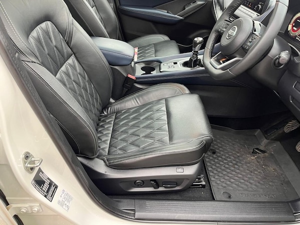This 2022 Nissan Qashqai DIG-T Tekna+ is a superb example, having been cherished by just one owner since new. This Euro 6 compliant model boasts a 1.3 litre petrol hybrid engine, offering an efficient and responsive driving experience. The Tekna+ trim level ensures a premium feel with leather interior packed with notable features designed for comfort and convenience. The Qashqai is renowned for its practicality and style, and this particular DIG-T Tekna+ variant stands out. Its advanced 1.3 litre petrol hybrid engine, combined with its Euro 6 emissions rating, signifies a commitment to modern, cleaner motoring. The single owner provenance suggests meticulous care and attention, making this 2022 model a compelling choice for those seeking a well maintained and feature rich family car. Part exchange welcome, finance arranged..Black leather upholstery, privacy glass, Glass Pan Roof, parking sensors, Great DAB Media system + Apple car play, 3 months/3000 mile warranty included., 360 reversing camera, 12v Power Sockets in Dash and Luggage Space, 20in Alloy Wheels - Diamond Cut, 3 Rear Headrests, 3 x 3-Point Rear Seatbelts, 60-40 Split Rear Folding Seats, ABS with EBD and Brake Assist, Active Brake Limited Slip, Advanced Intelligent Key with Driver Memory Storage - Seats - Mirrors - Audio, Advanced Windscreen Head Up Display, AM-FM Audio System with DAB, Arctic White, Auto Dimming Rear View Mirror, Auto Hold Function, Auto Rear Wiper When Reversing, Automatic Dual Zone Climate Control with Pollen Filter, Blind Spot Warning, Bluetooth with Audio Streaming, Body Coloured Handles, Body Coloured Mirror Caps, Body Side Moulding, Bose Pack, Chrome Interior Door Handles, Chrome Side Window Finisher, Curtain Airbags, Dark Headlining, Door Mirror - Electrically Adjustable - Heated - Auto Folding with LED Turn Indicator, Door Mirrors with Memory Function, Drive Modes - Sport-Normal-Eco, Driver and Passenger Airbags, Driver and Passenger Sun Visor with Illuminated Vanity Mirror, Driver Seat Back Pockets, Driver-Passenger and Rear Seatbelt Reminder, Electric 4-Way Lumbar Support on Driver Seat, Electric 4-Way Lumbar Support on Passengers Seat, Electric Parking Brake, Electric Speed-Sensitive Power Steering, Electrically Adjustable Drivers Seat with Massage and Memory Function, Emergency and Breakdown Call, Engine Immobiliser, Engine Start Button, Follow Me Home Headlights, Front Centre Console and Armrest, Front Cupholders x2, Front Door with Bottle Holders, Front Heated Seats, Front Parking Sensors, Front Seat Belts with Load Limiter and Pretensioners, Front Seatbelt Height Adjustment, Front USB Connections - Type A and Type C, Full Digital 12.3in TFT Digital Combimeter, Glass Roof Pack, Google Maps Services - Search - Weather - 3D Maps and Google Street View, Handsfree Automatic Opening Power Tailgate, Headlight Auto Levelling System, Heated Steering Wheel, Height Adjustable Driver Seat, Height Adjustable Front Headrests, Hill Start Assist, Intelligent Around View Monitor, Intelligent Auto Headlight, Intelligent Blind Spot Intervention, Intelligent Cruise Control, Intelligent Driver Alertness, Intelligent Forward Collision Warning, Intelligent Front Emergency Braking with Pedestrian Recognition and Cyclist Recognition and Junction Assist, Intelligent Lane Intervention, Intelligent Rear Auto